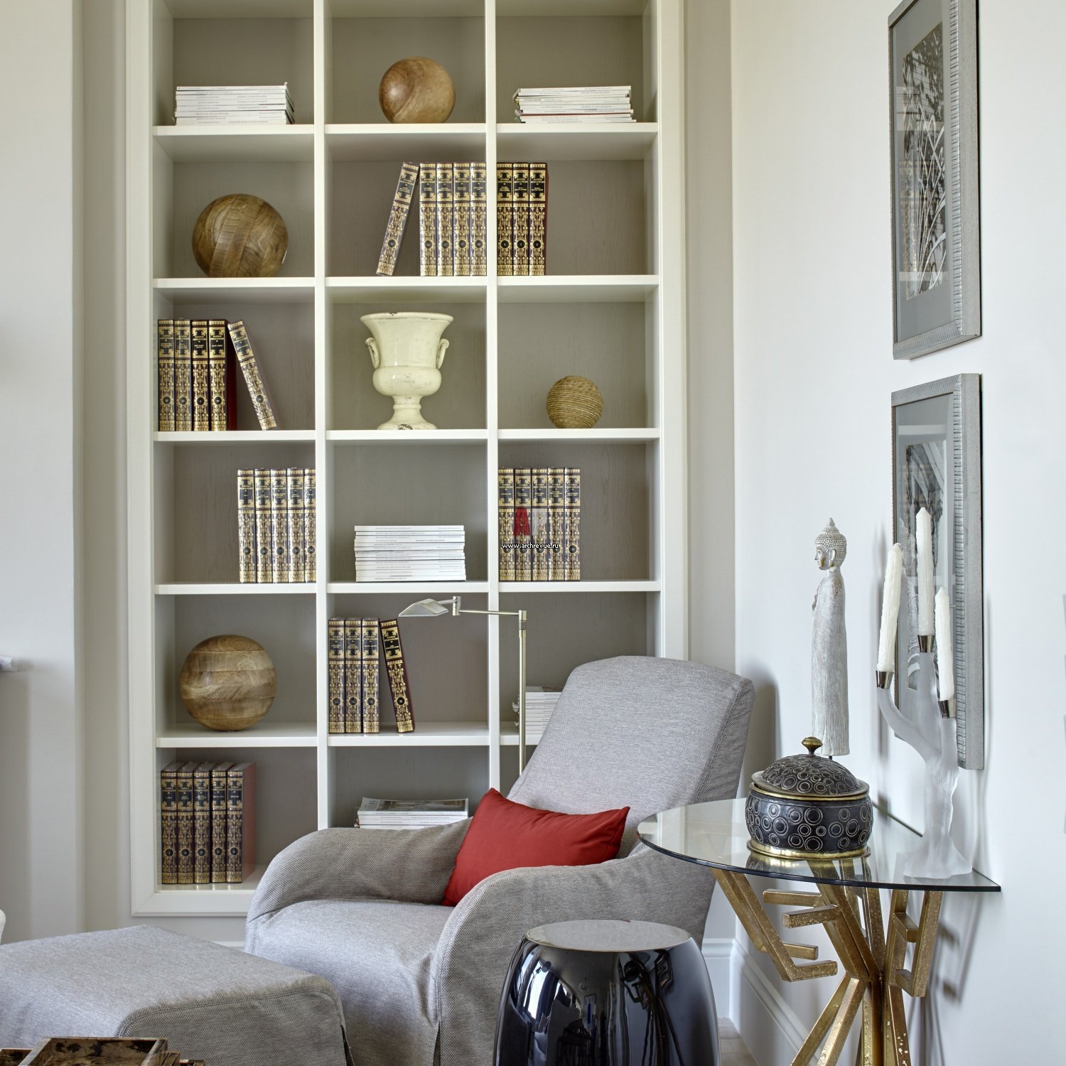 Встроенные полки в гостиной