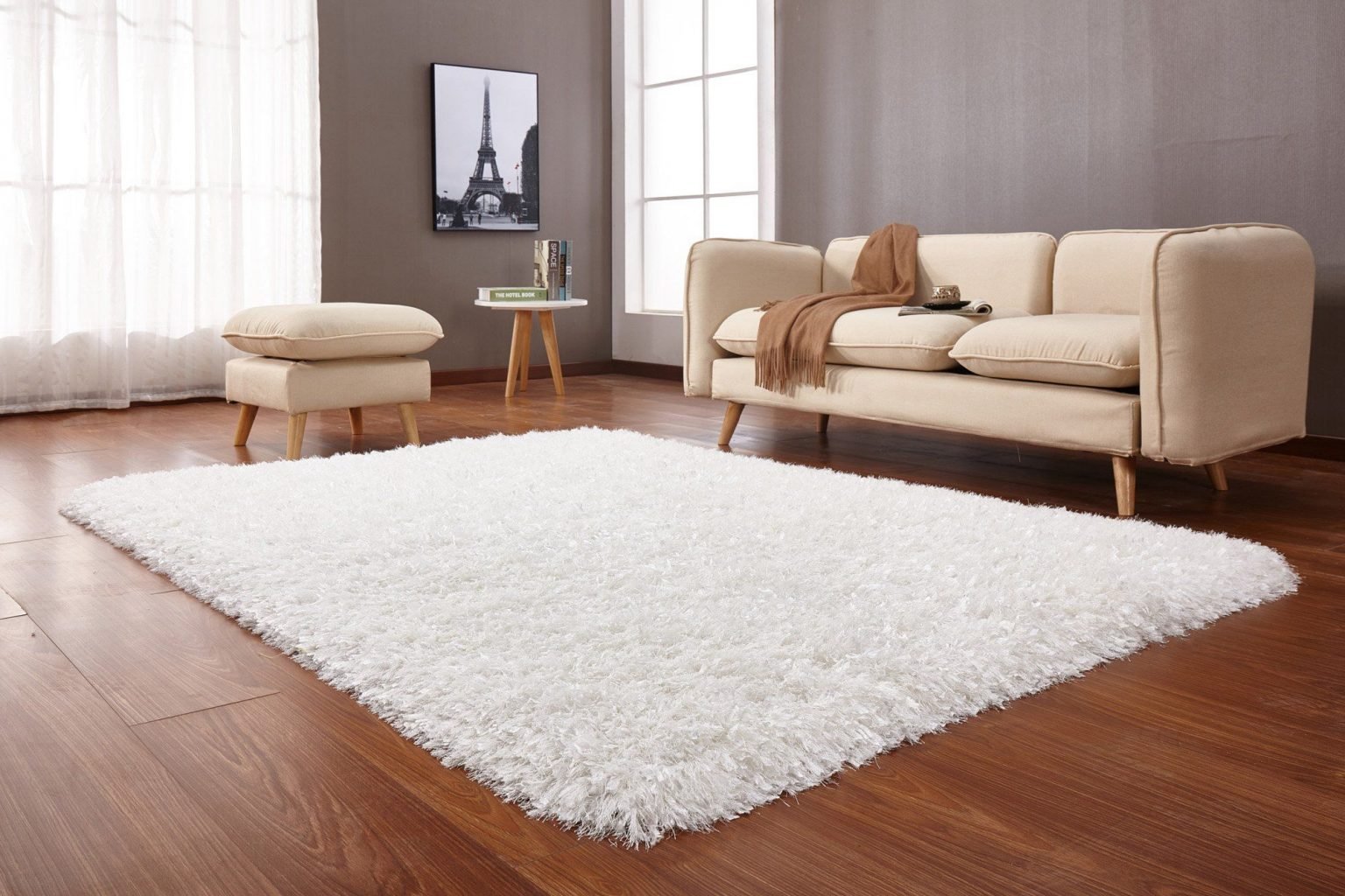 Белый ковер в гостиную
