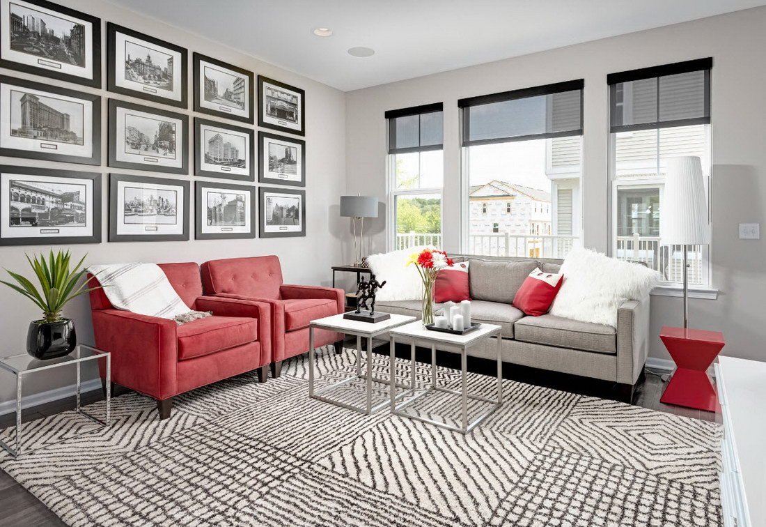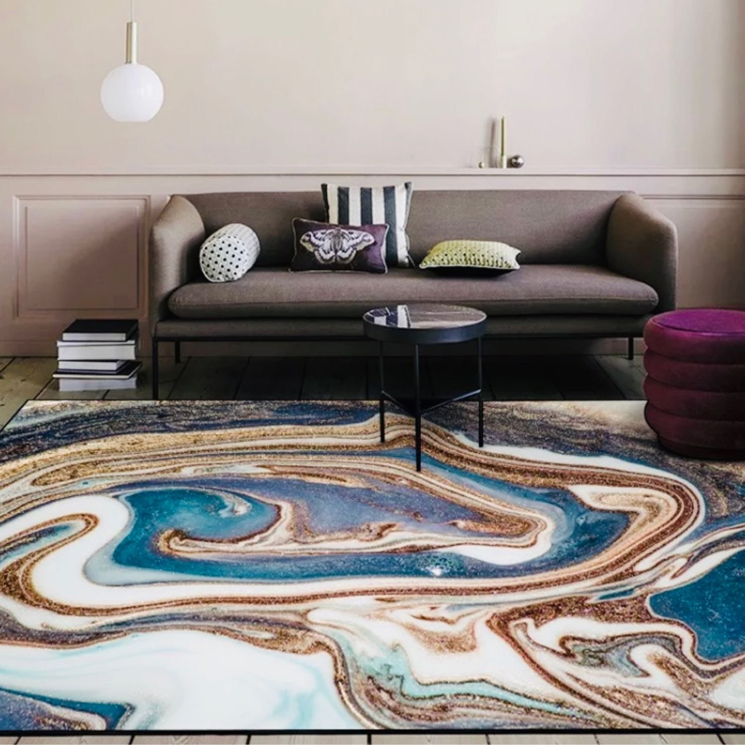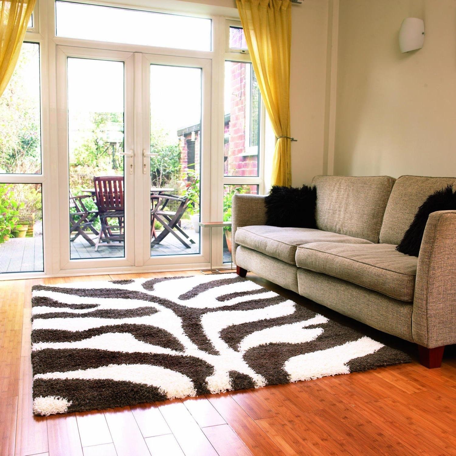 Черный ковер в интерьере гостиной