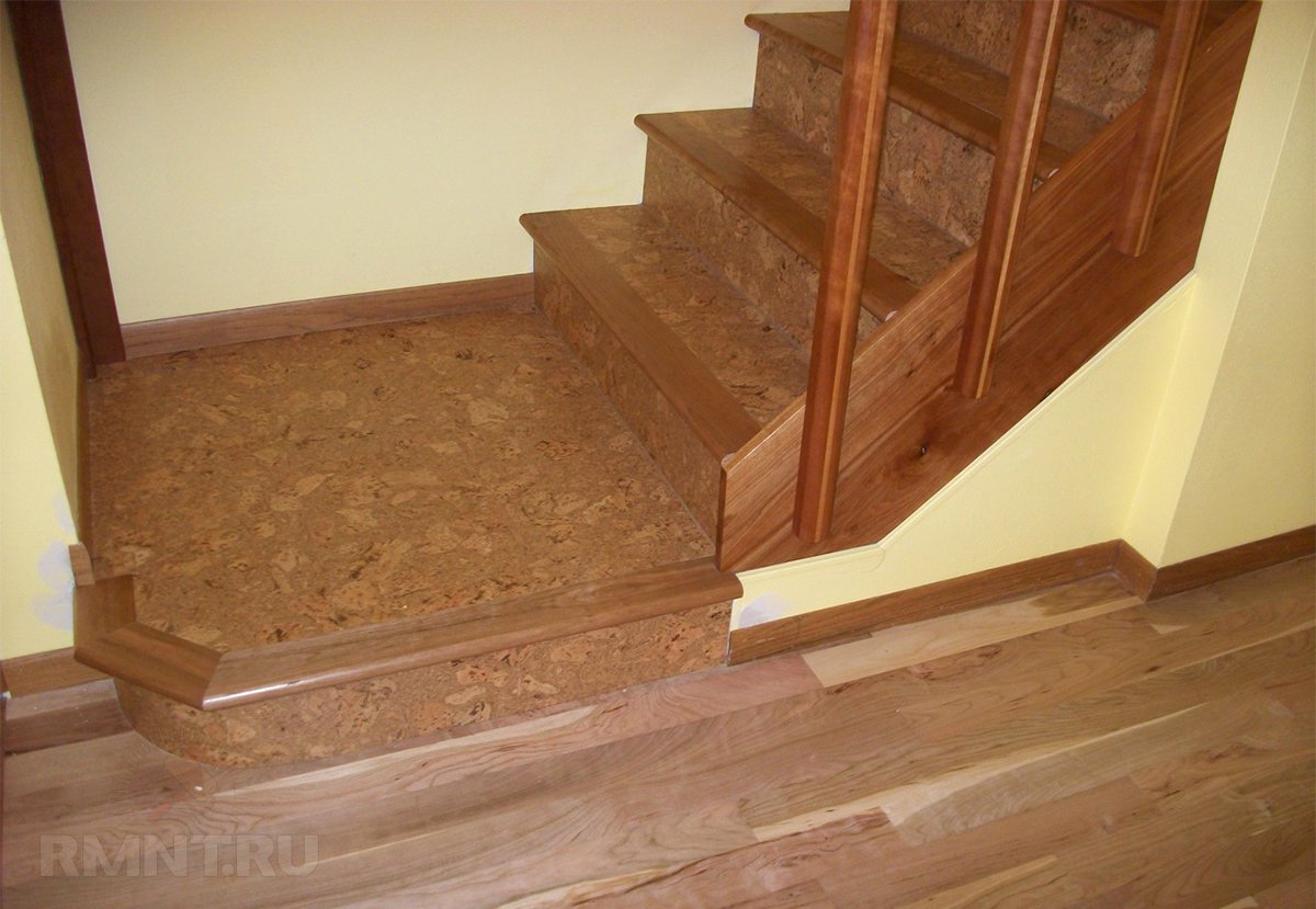 Отделка лестницы пробкой