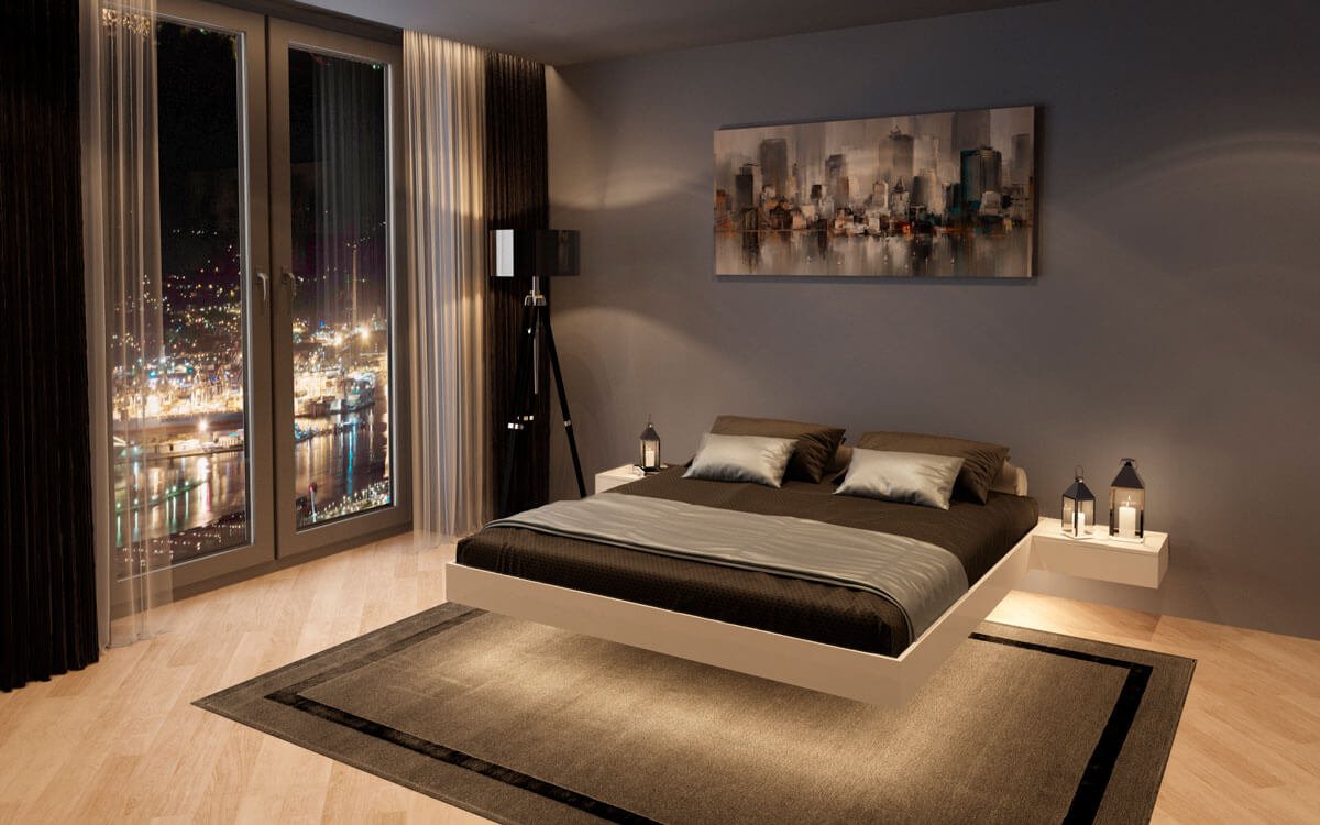 Парящая кровать с подсветкой