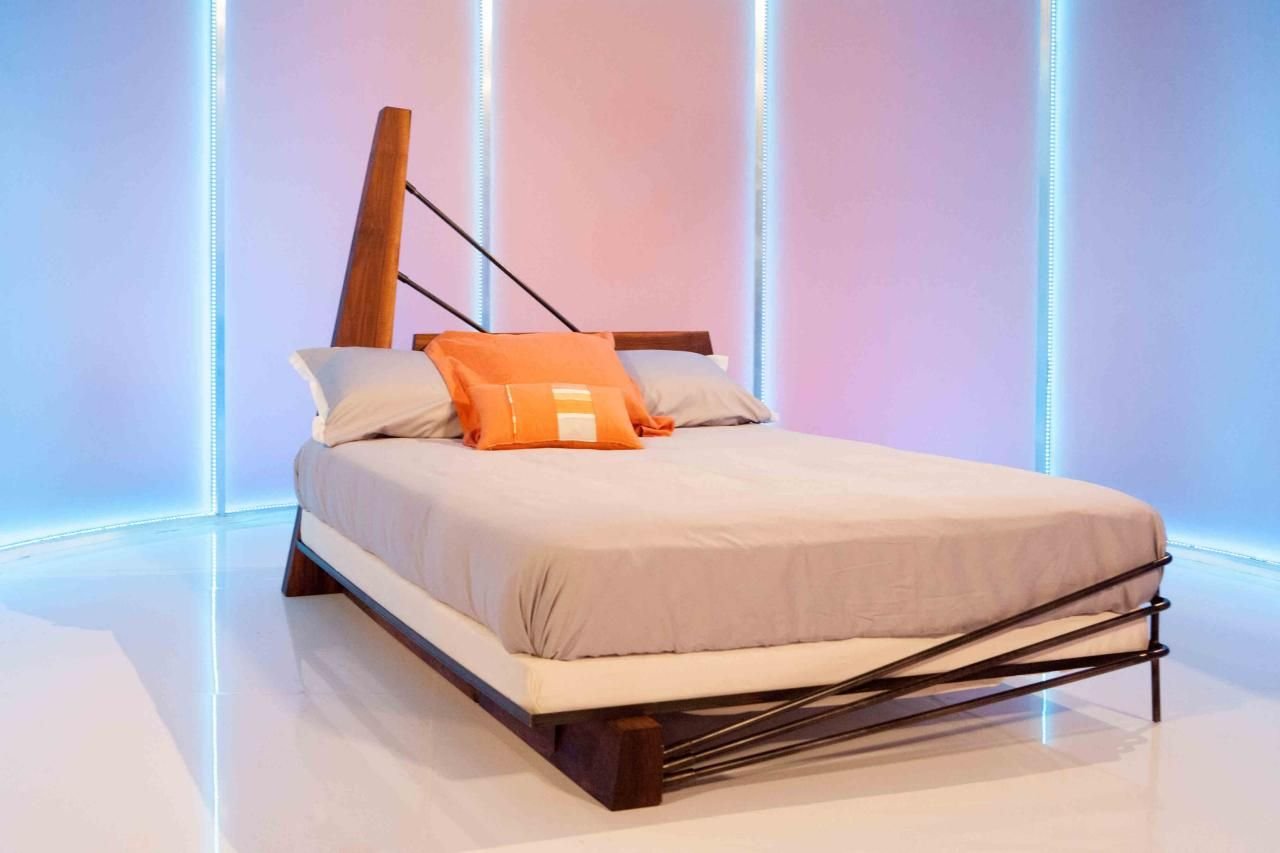 Парящая кровать с подсветкой из металла