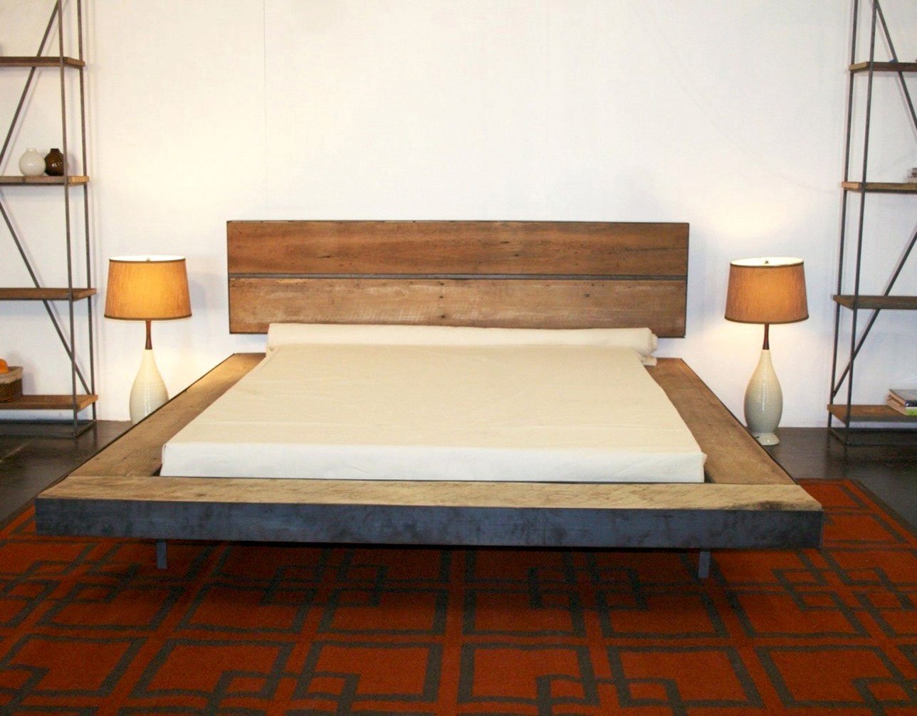 Парящая кровать из металла и дерева