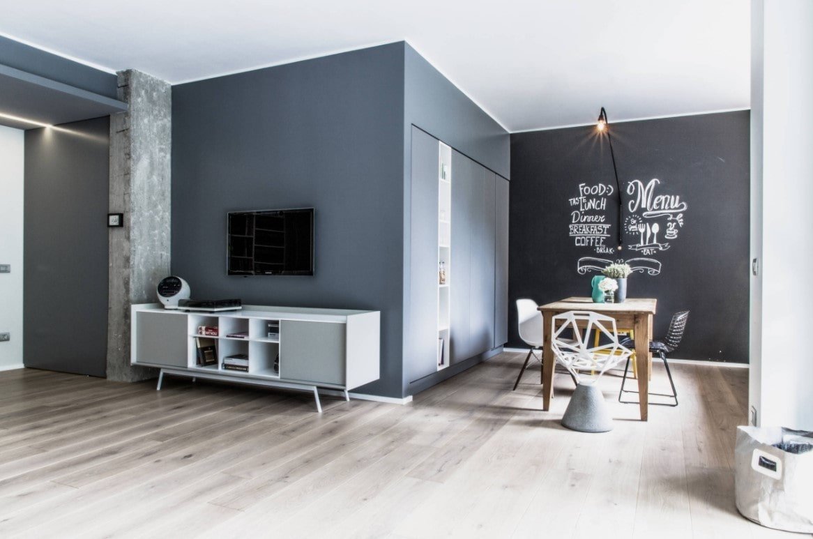 Темный пол и светлые стены в интерьере