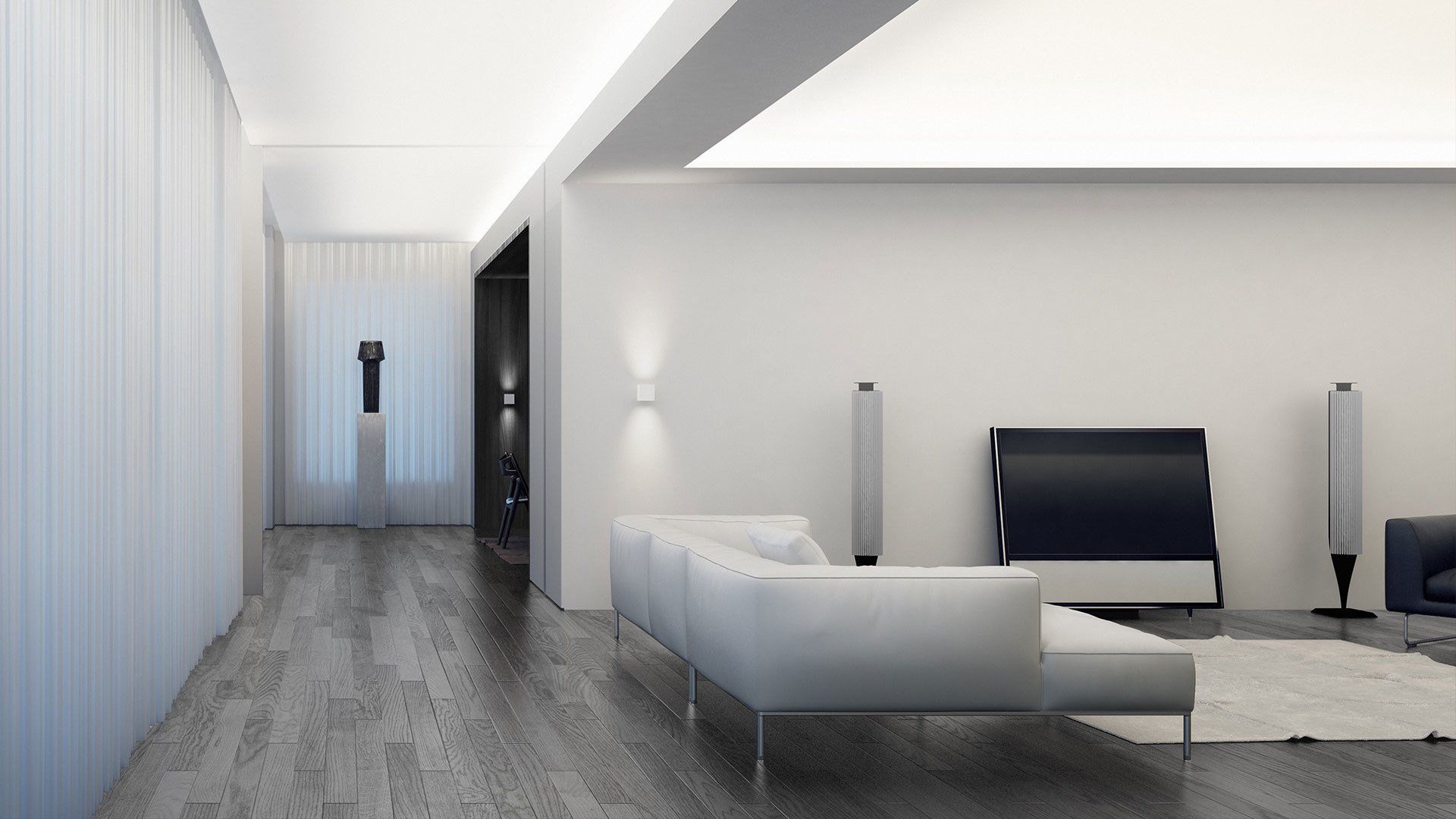Комната с белым ламинатом