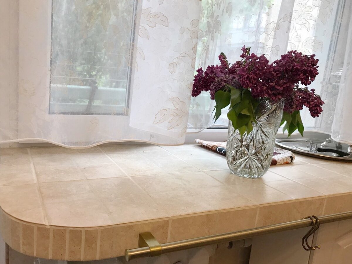 Подоконник из плитки пол на кухне