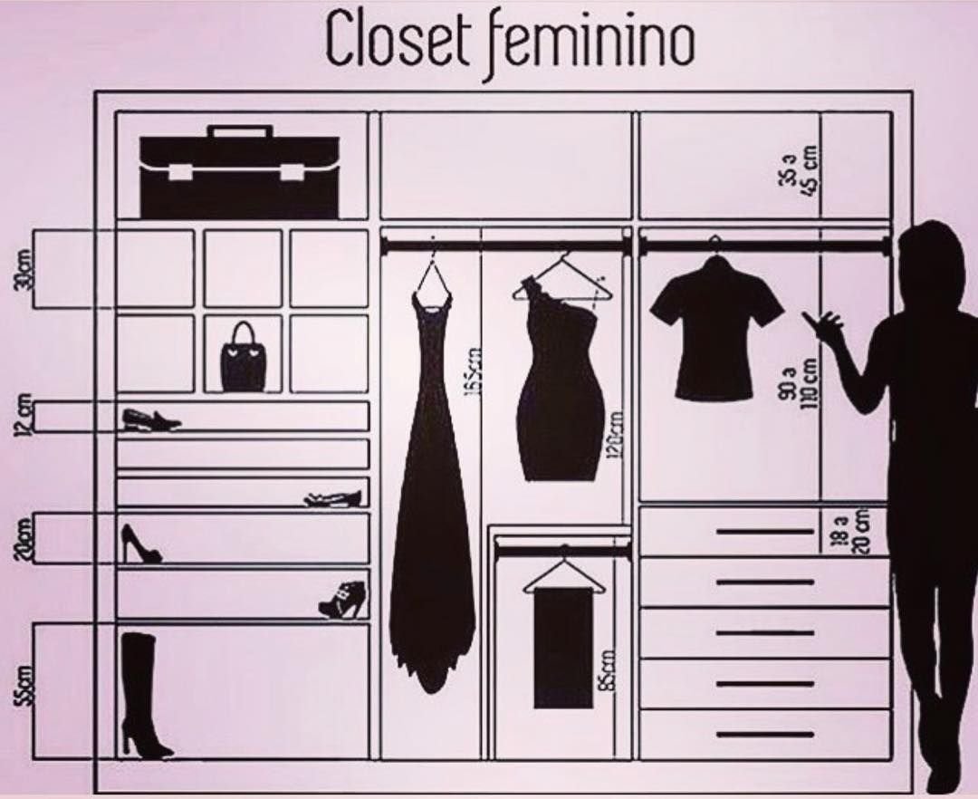 Эргономика гардеробной комнаты с размерами