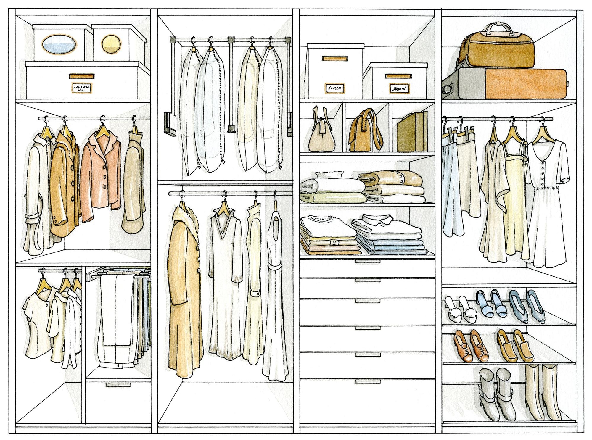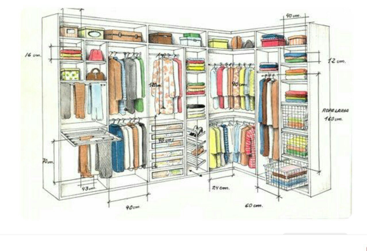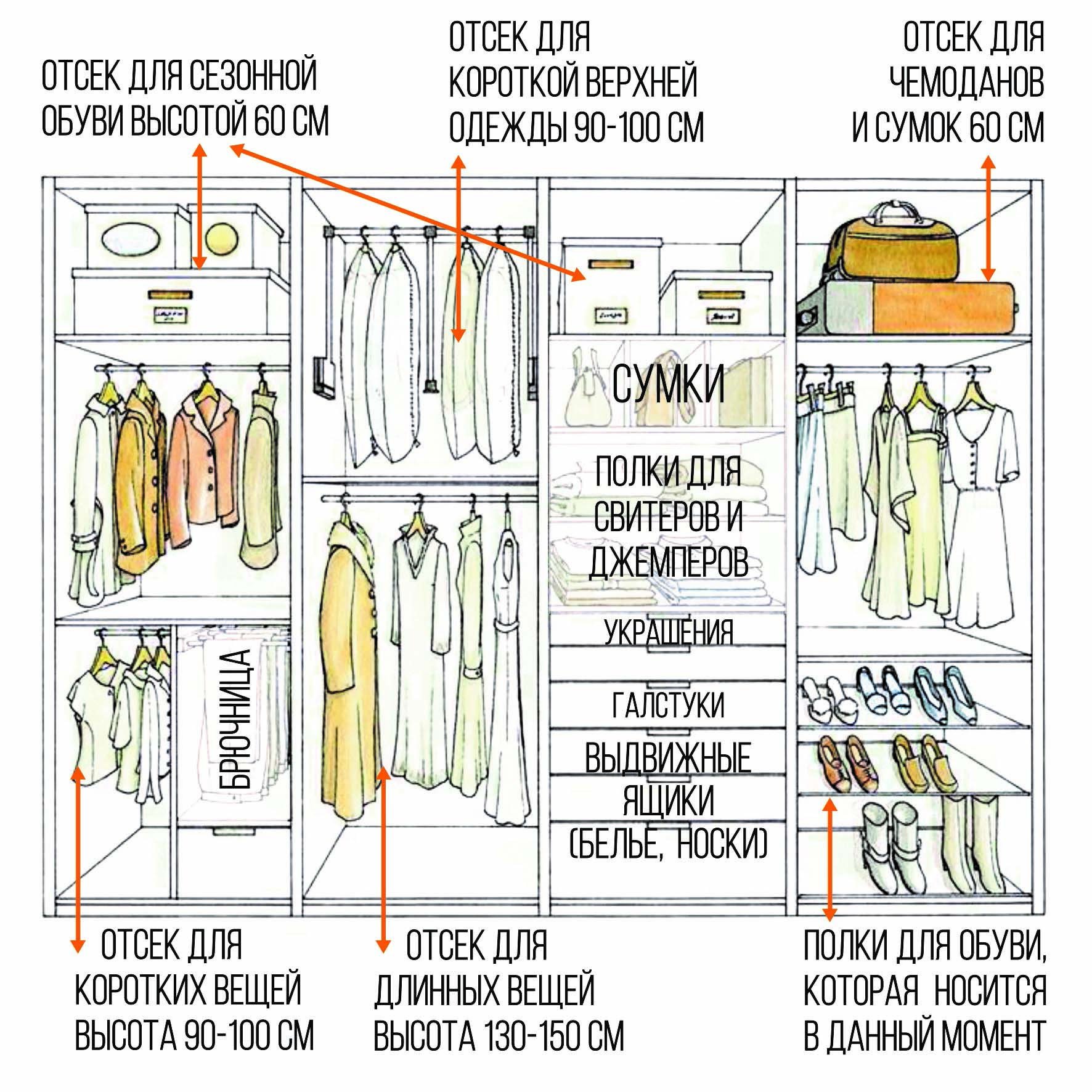 Схема расположения вещей в гардеробной