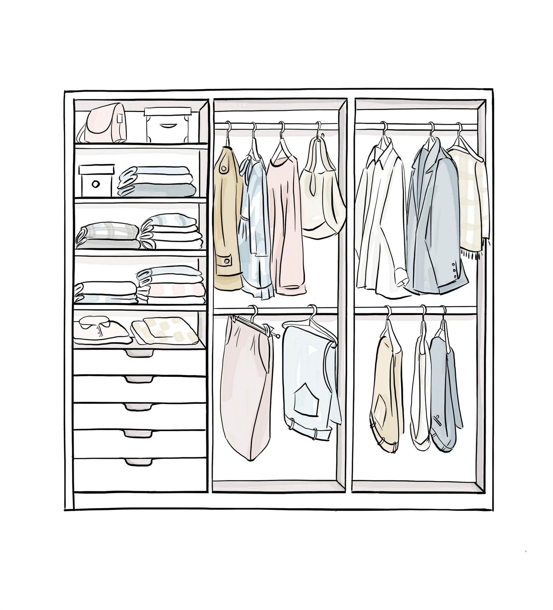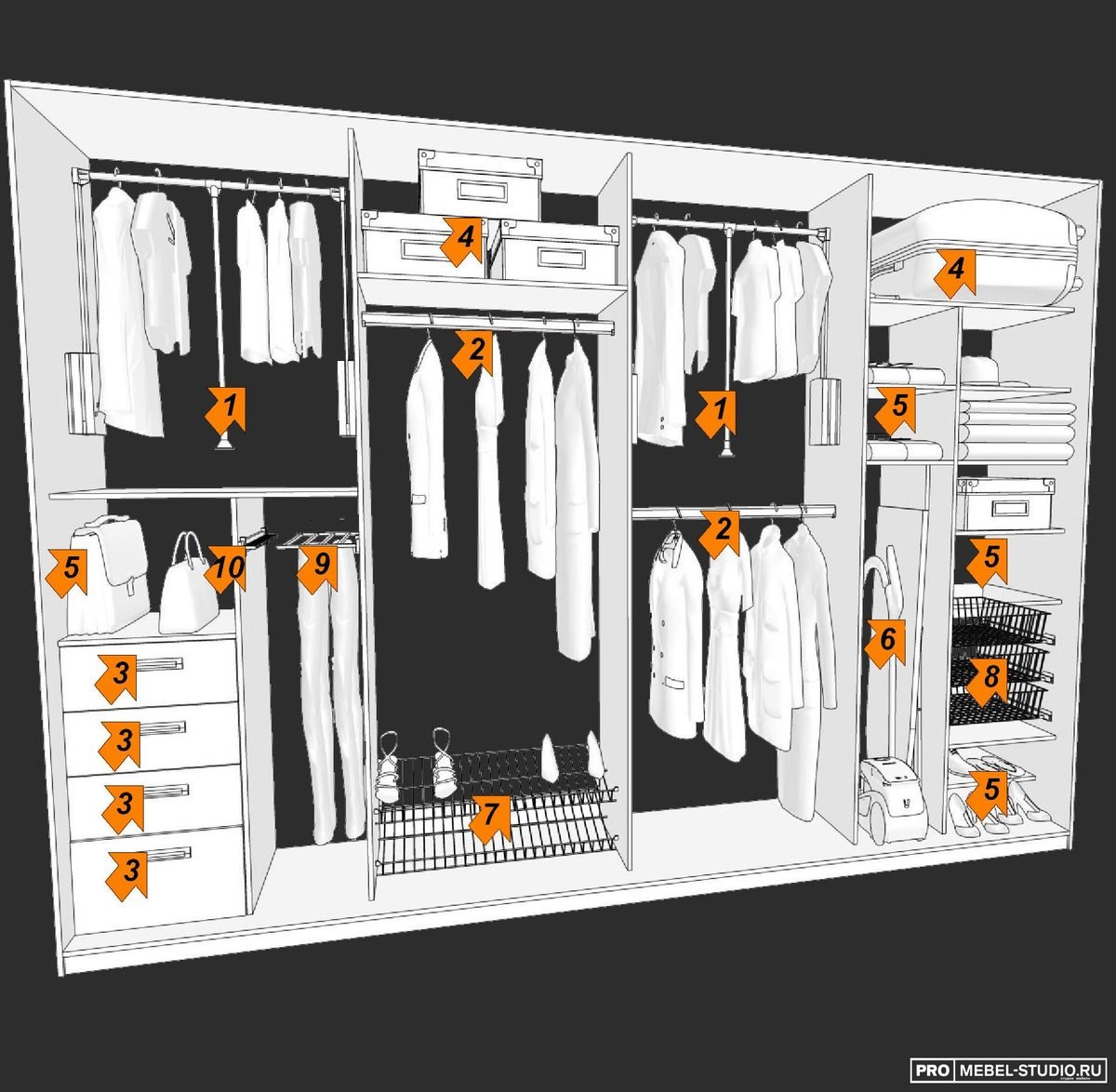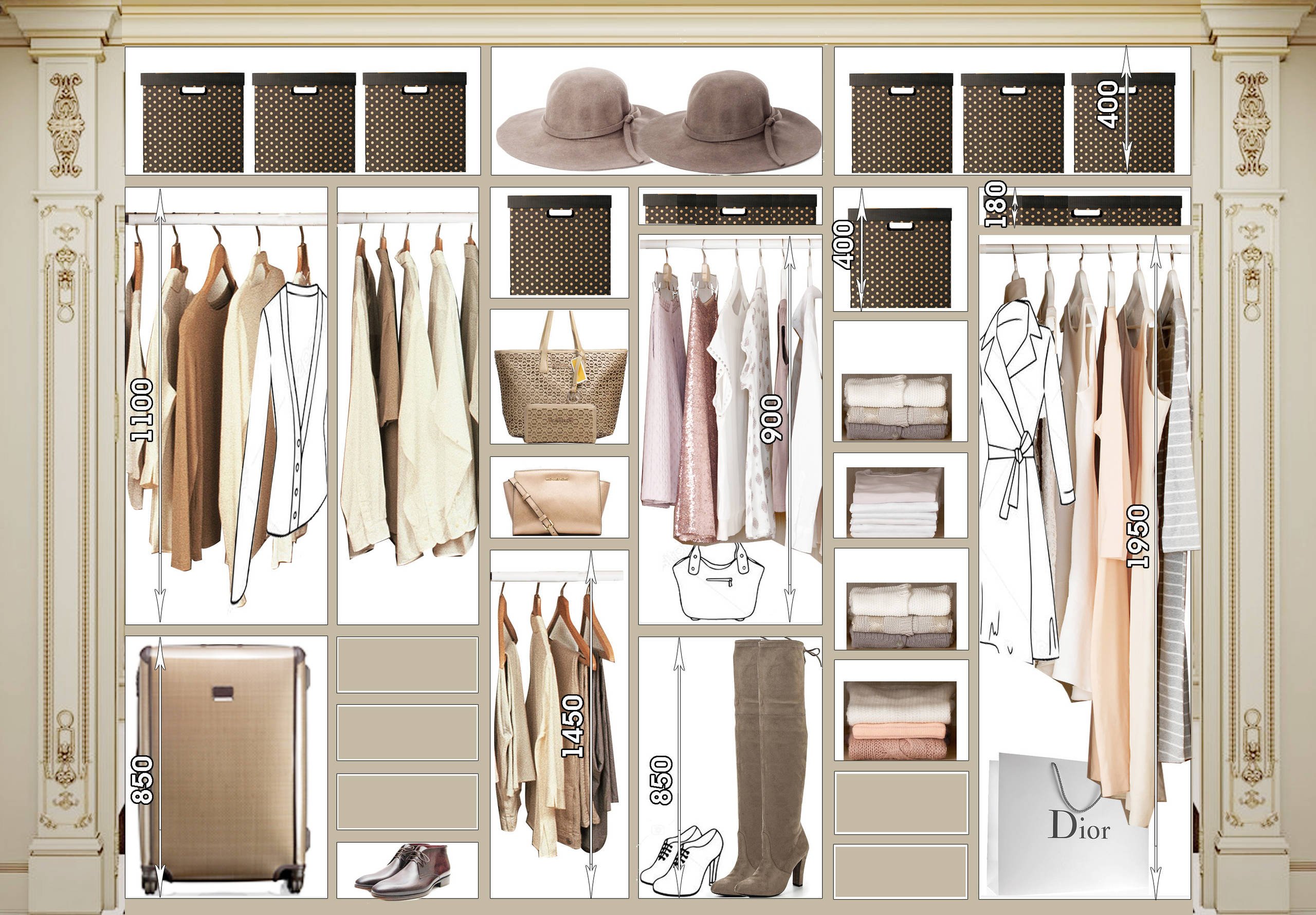 Схема расположения вещей в гардеробной
