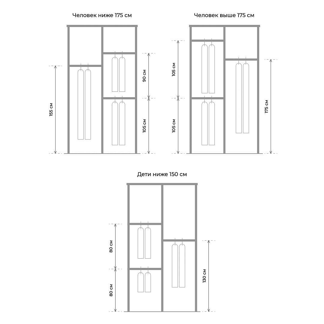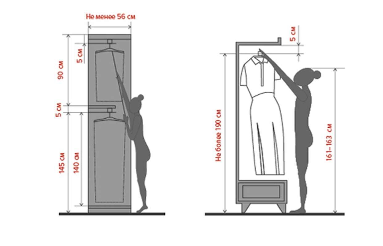 Гардеробный шкаф эргономика ширина