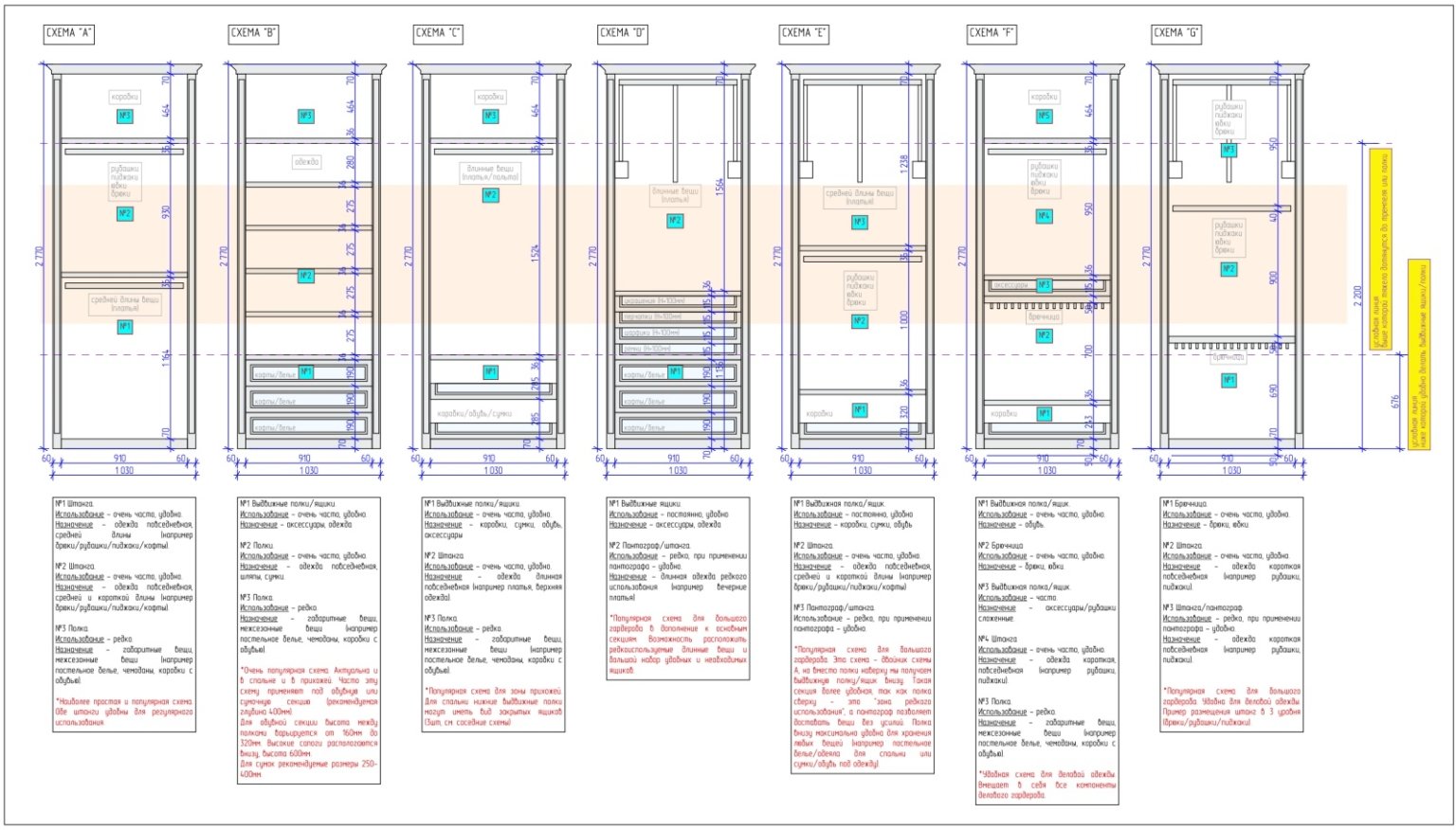 Шкаф гардеробная чертеж эргономика