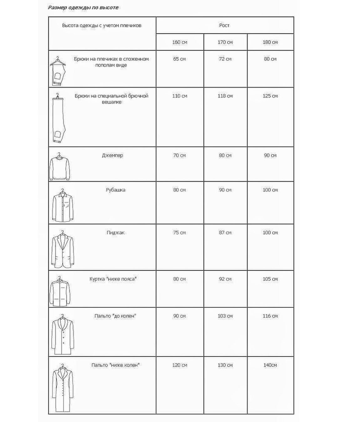 Высота штанги для одежды