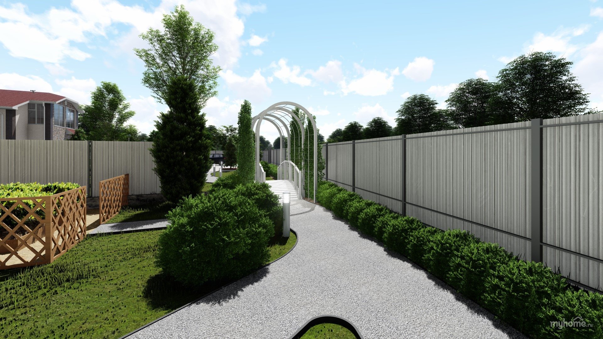 Ландшафт между домом и забором