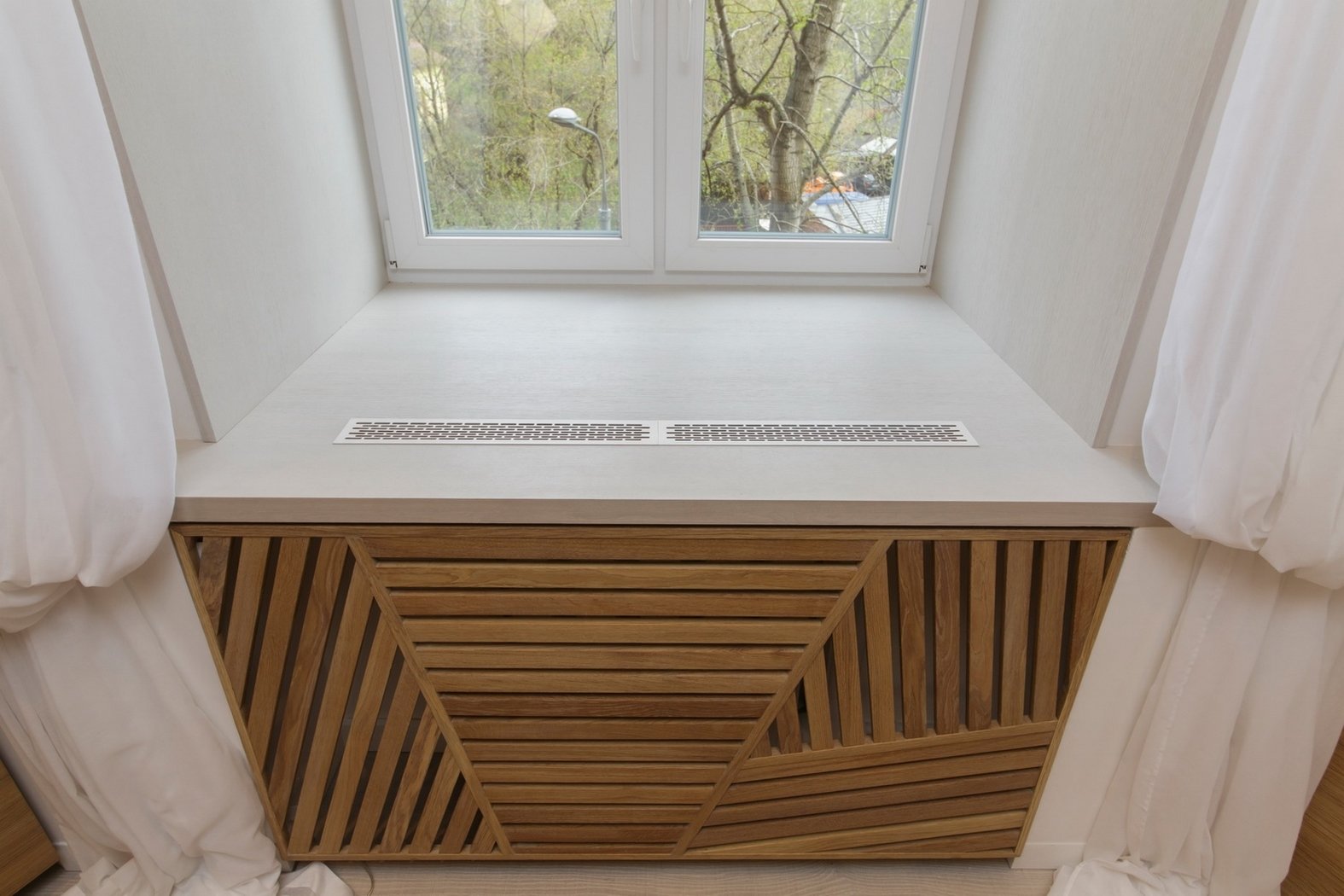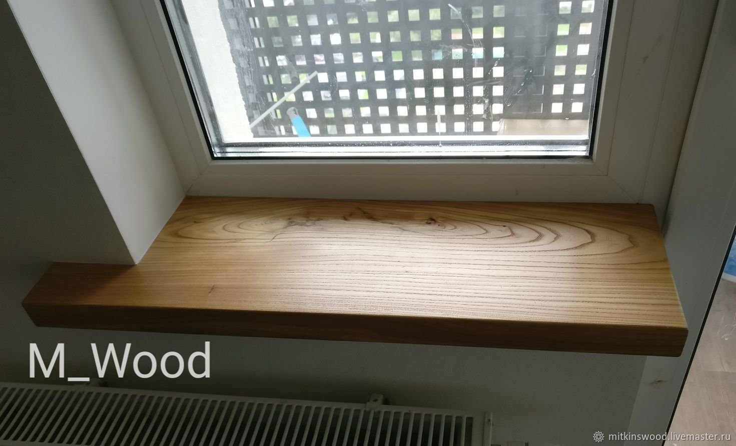 Подоконник деревянный с решеткой для радиатора