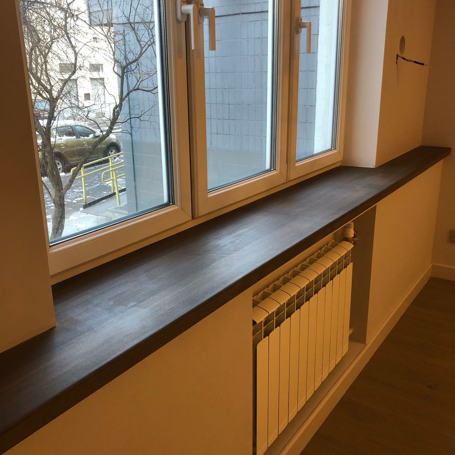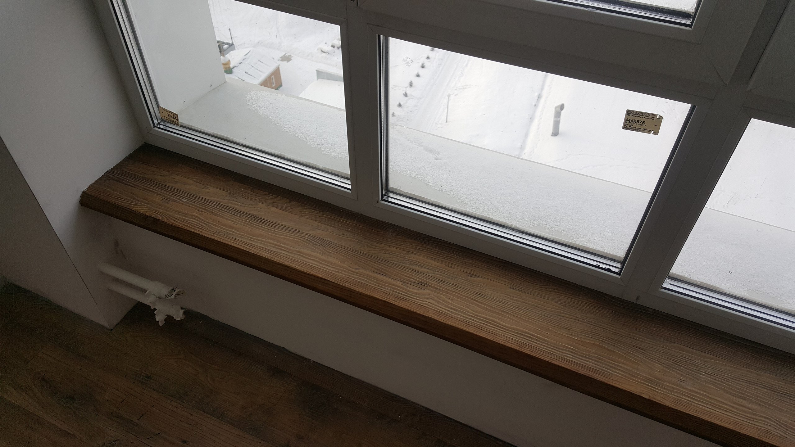 Деревянный подоконник с экраном