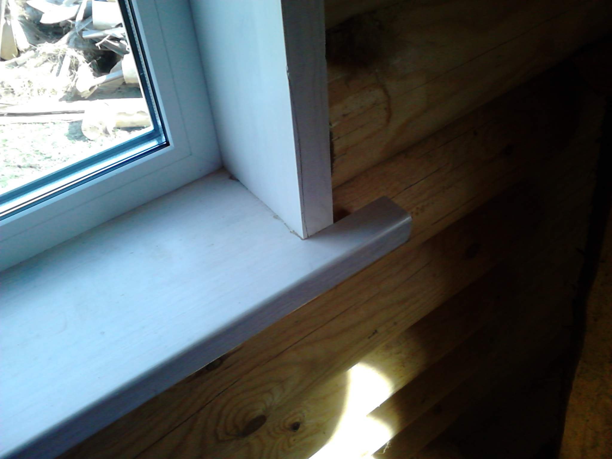 Окно с деревянным подоконником