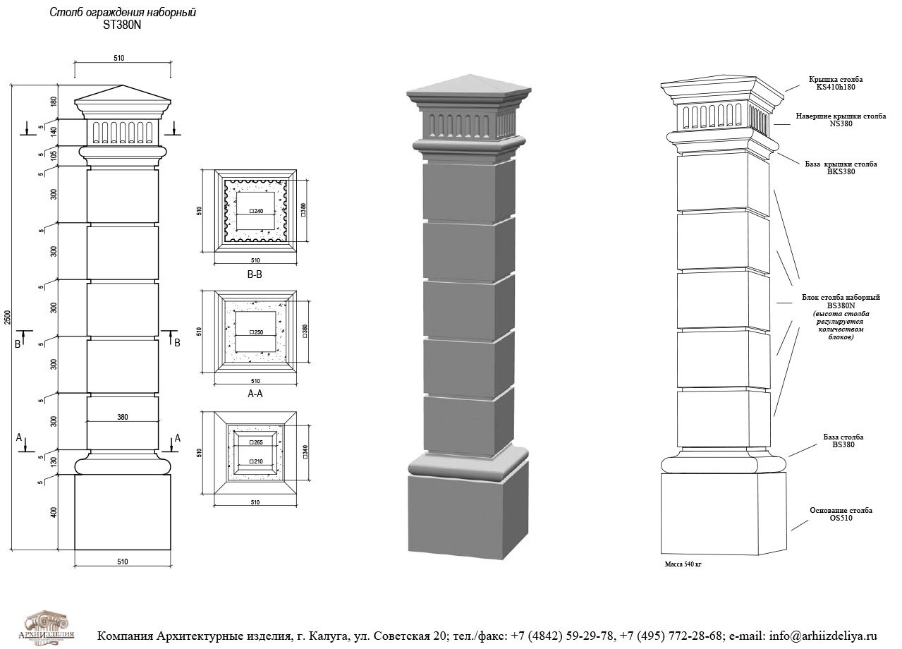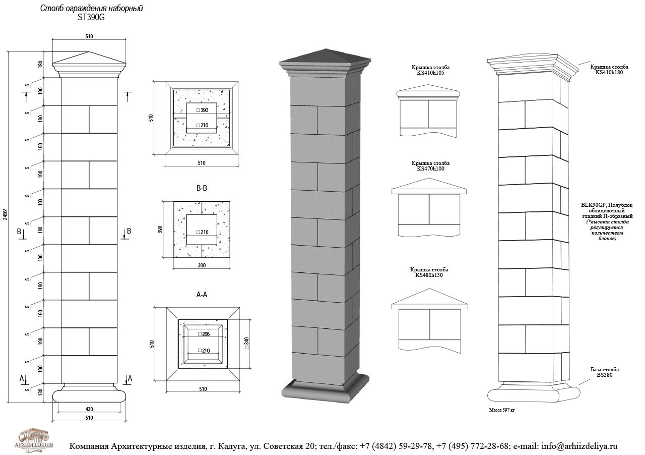 Блок заборного столба 380