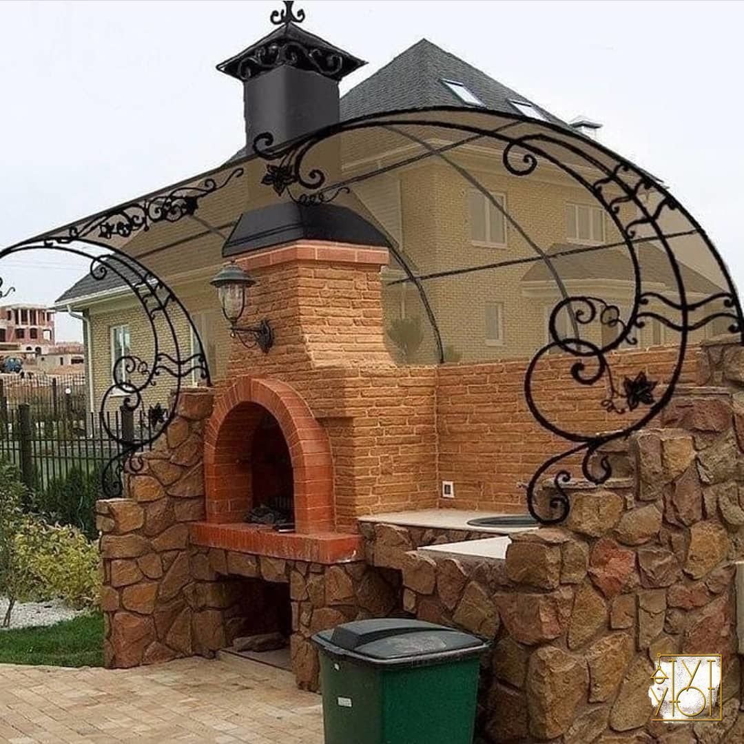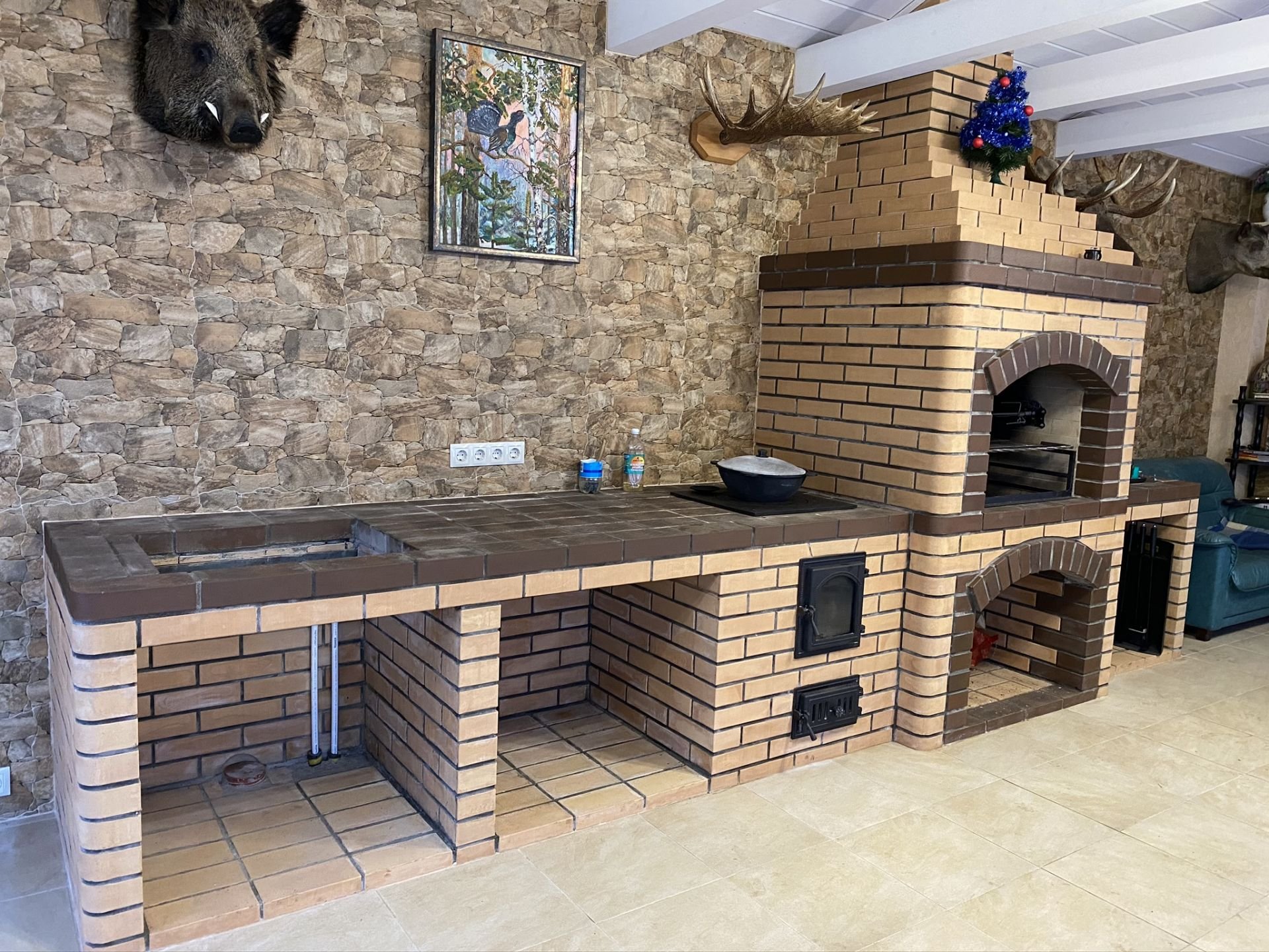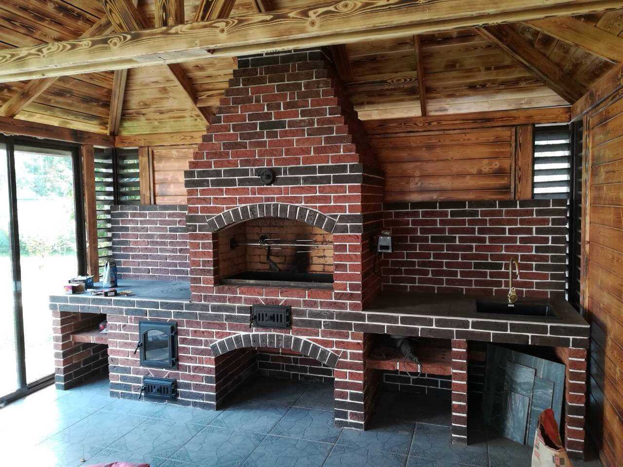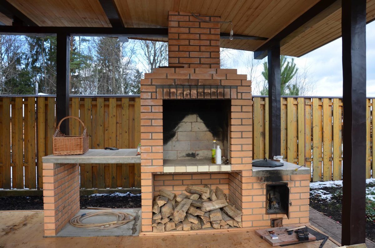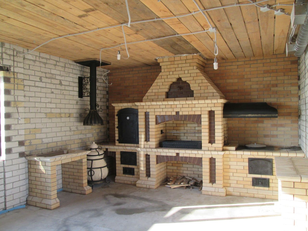 Угловой барбекю мангальная зона с коптильней и печью из кирпича