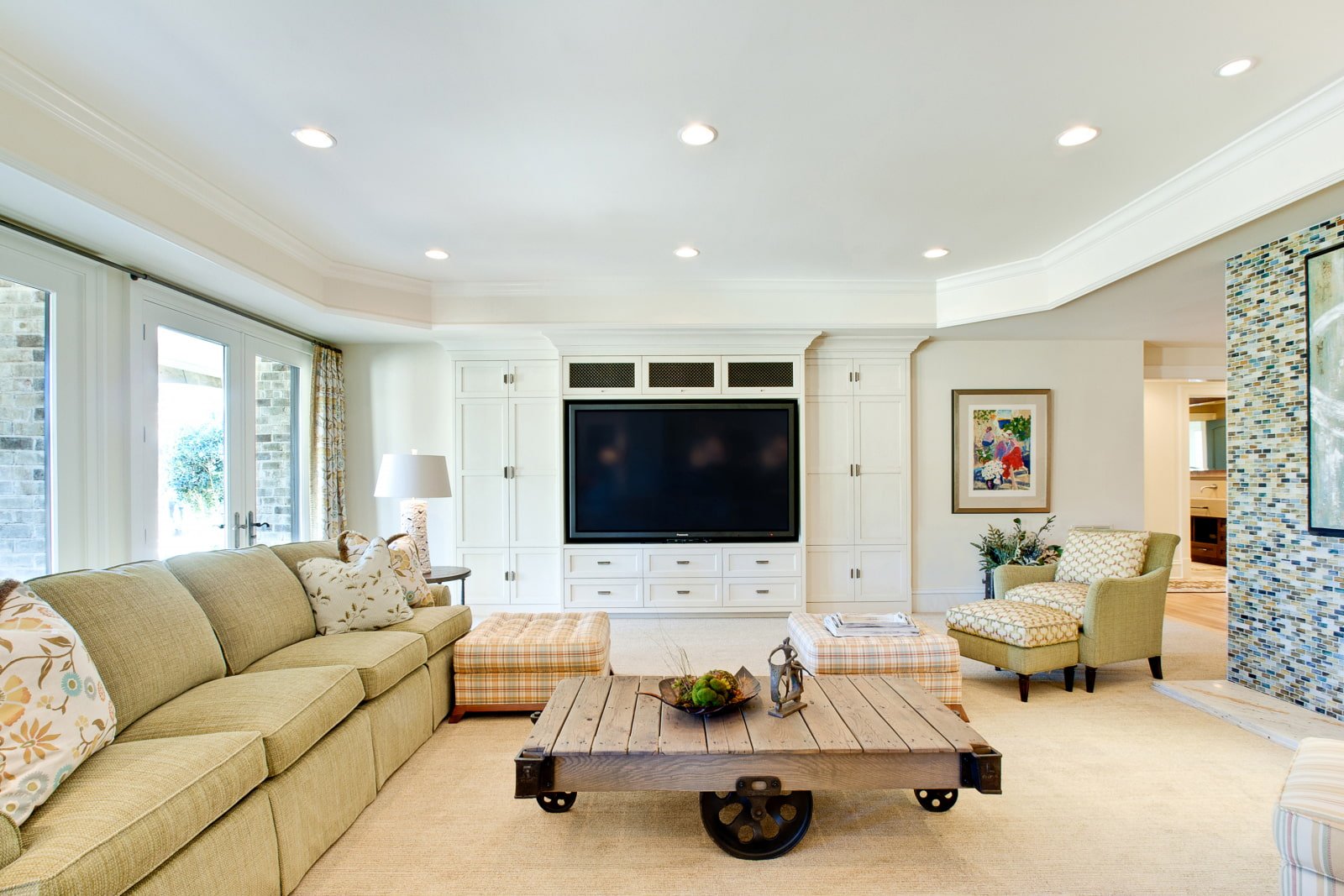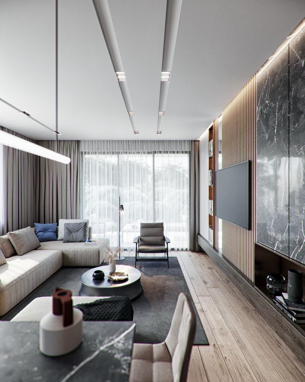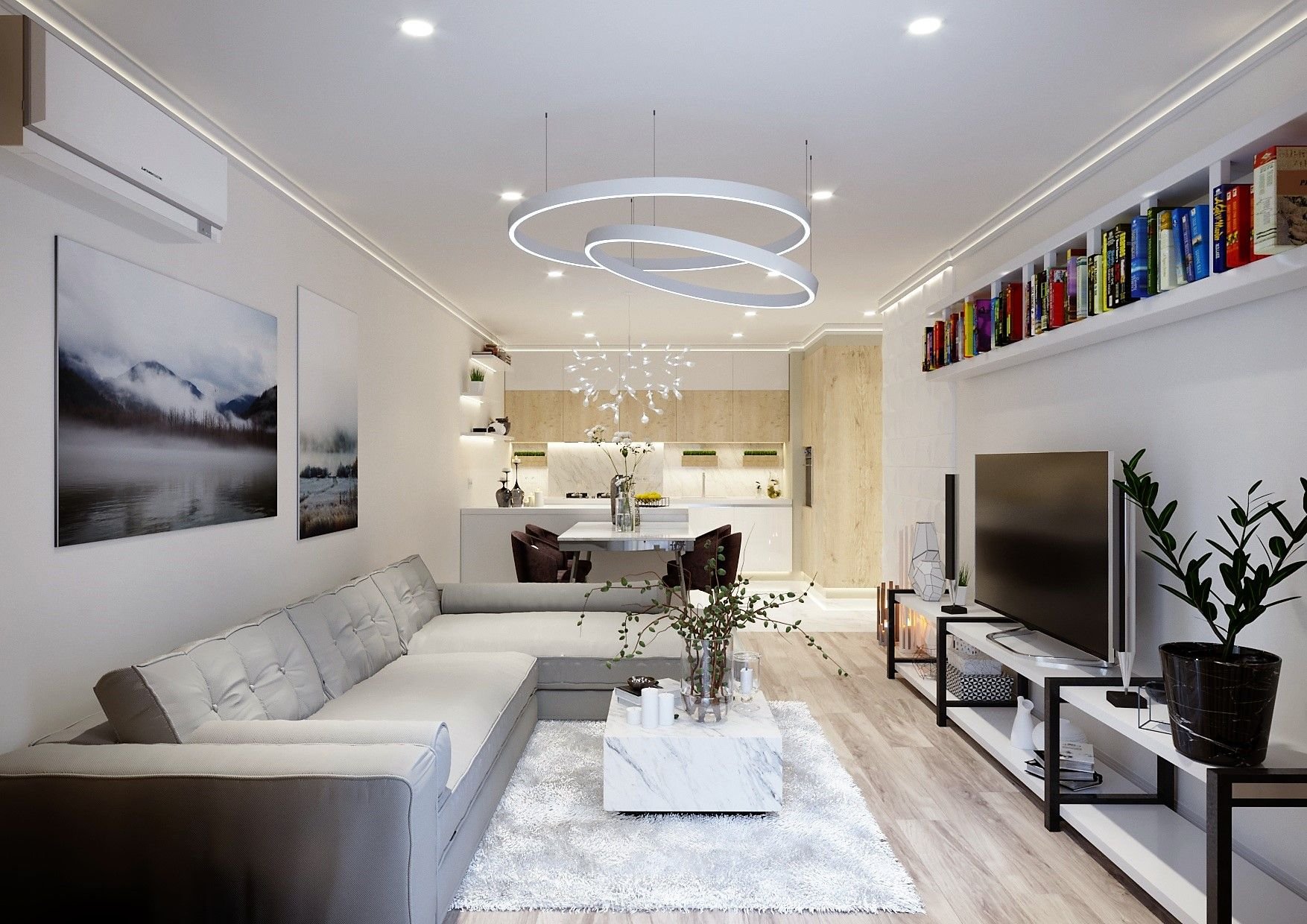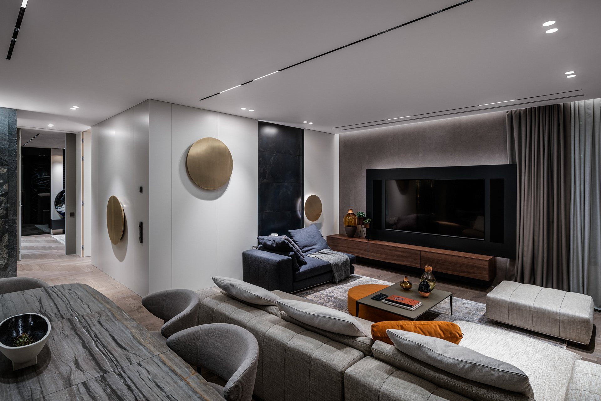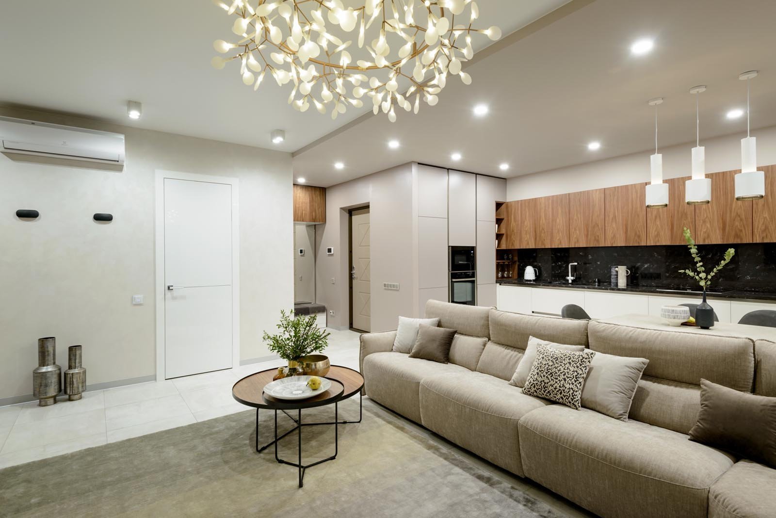 Гостиная большая с точечными светильниками
