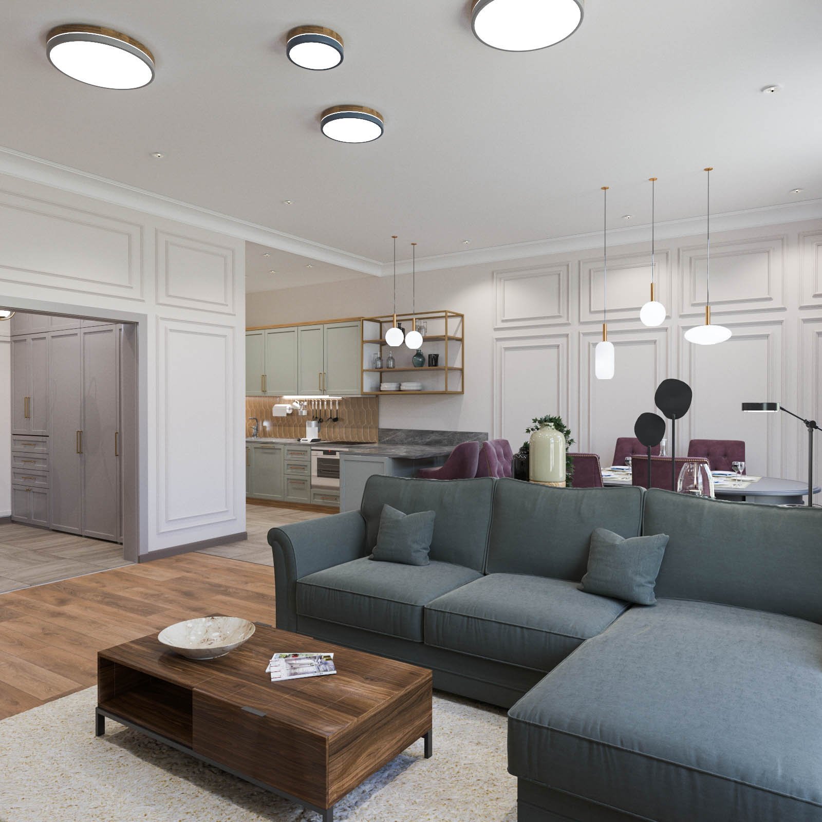 Освещение в кухне-гостиной