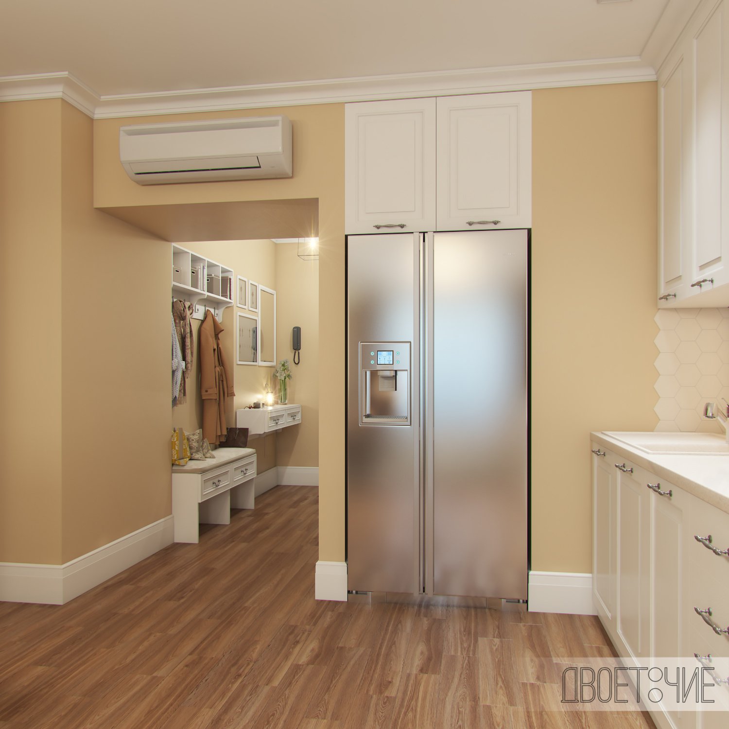Встроенный холодильник в прихожей