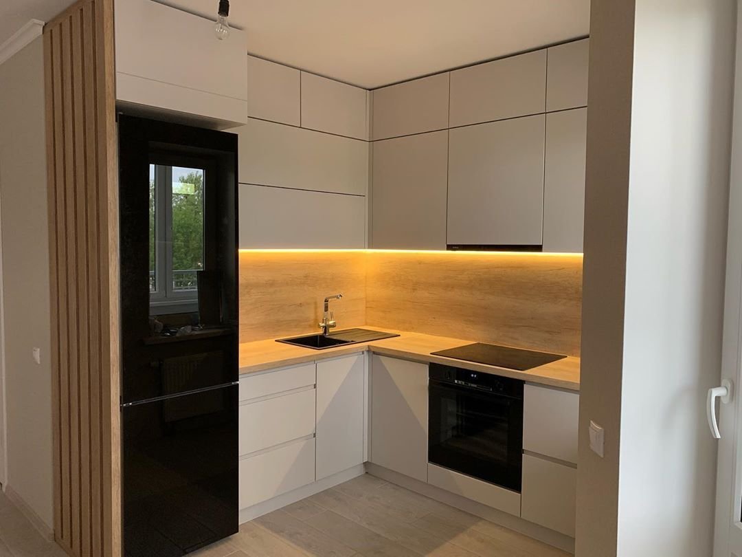 Угловая кухня с холодильником