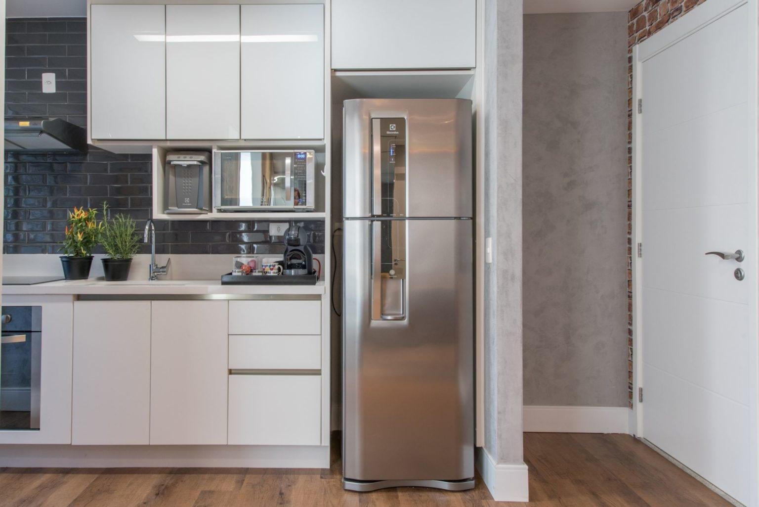 Встраиваемый холодильник у стены