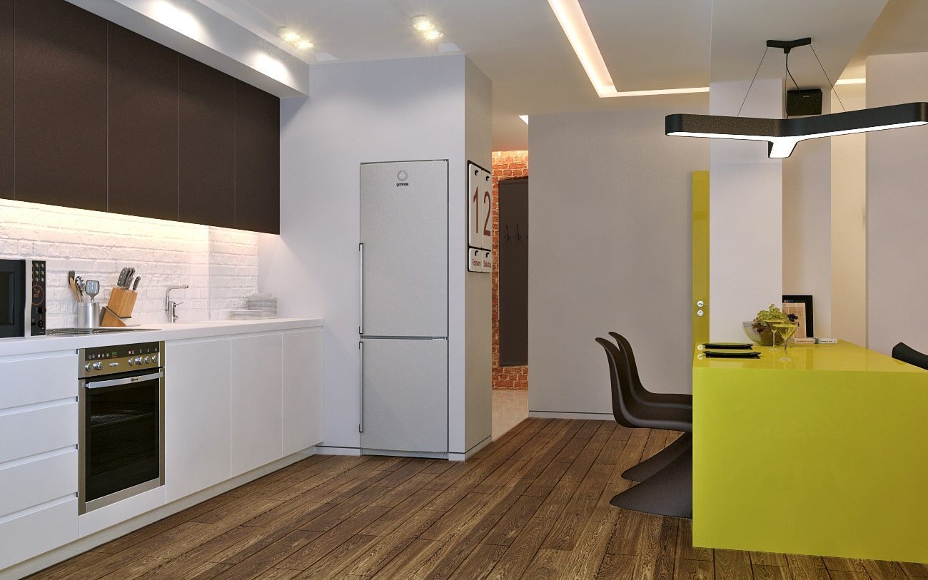 Кухня в студии с холодильником