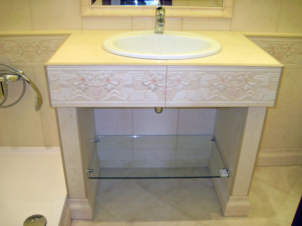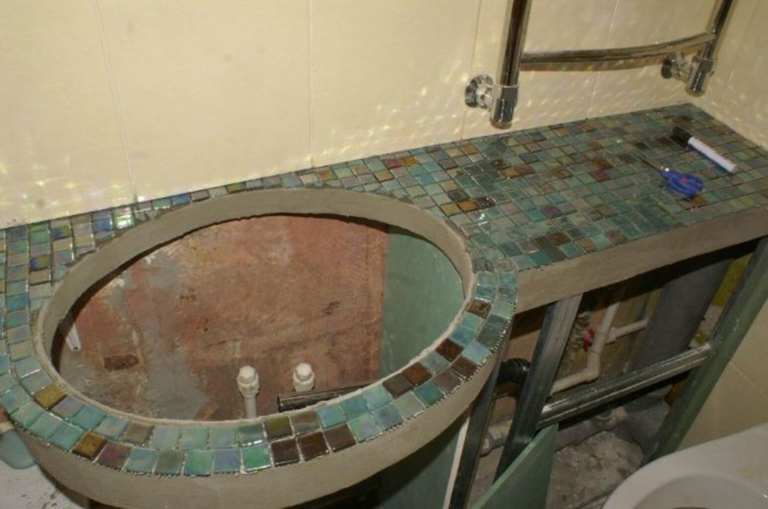 Столешницы под раковину и стиральную машину в ванную из мозаики