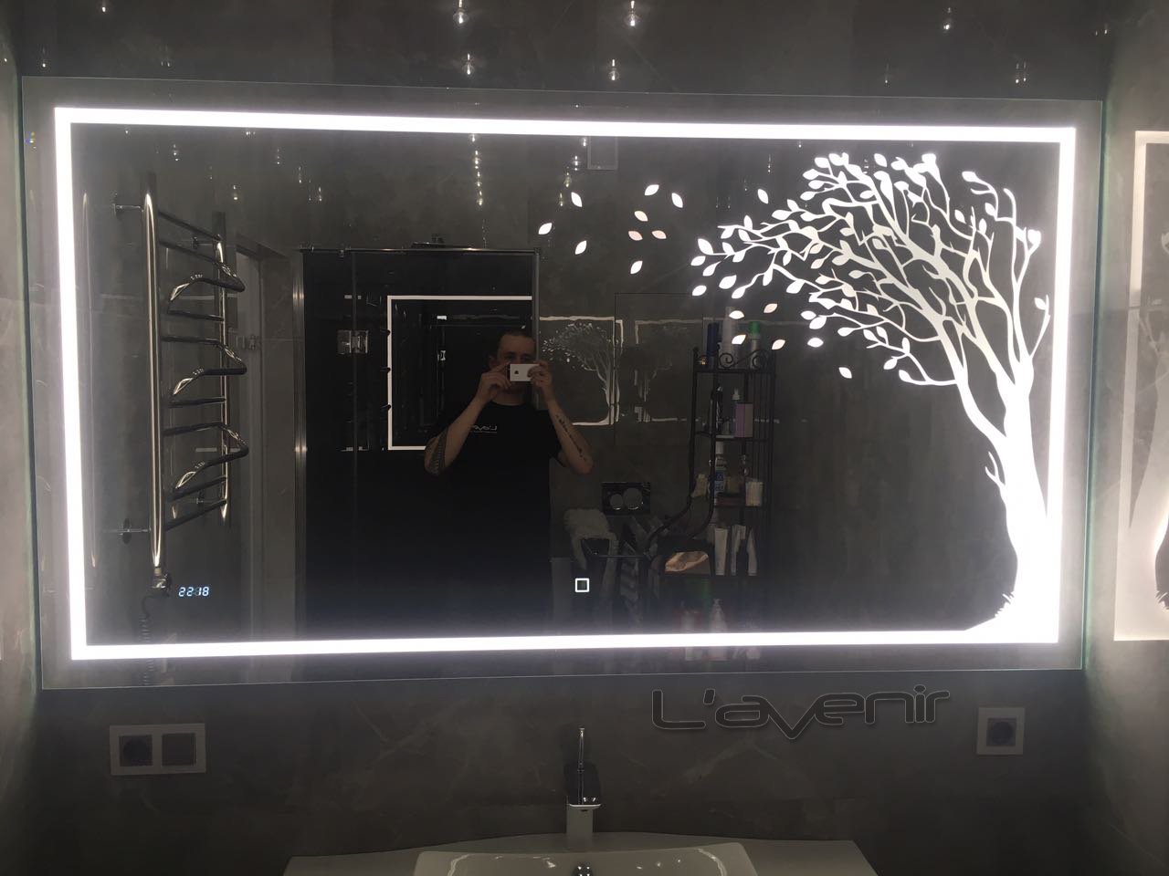 Зеркало с пескоструйной подсветкой