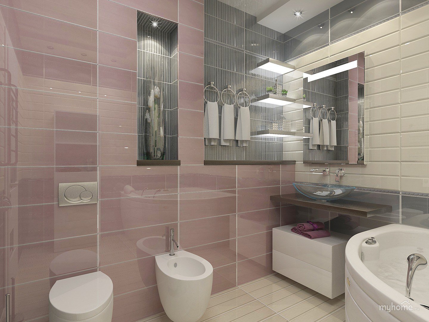 Ванна в серо розовых тонах