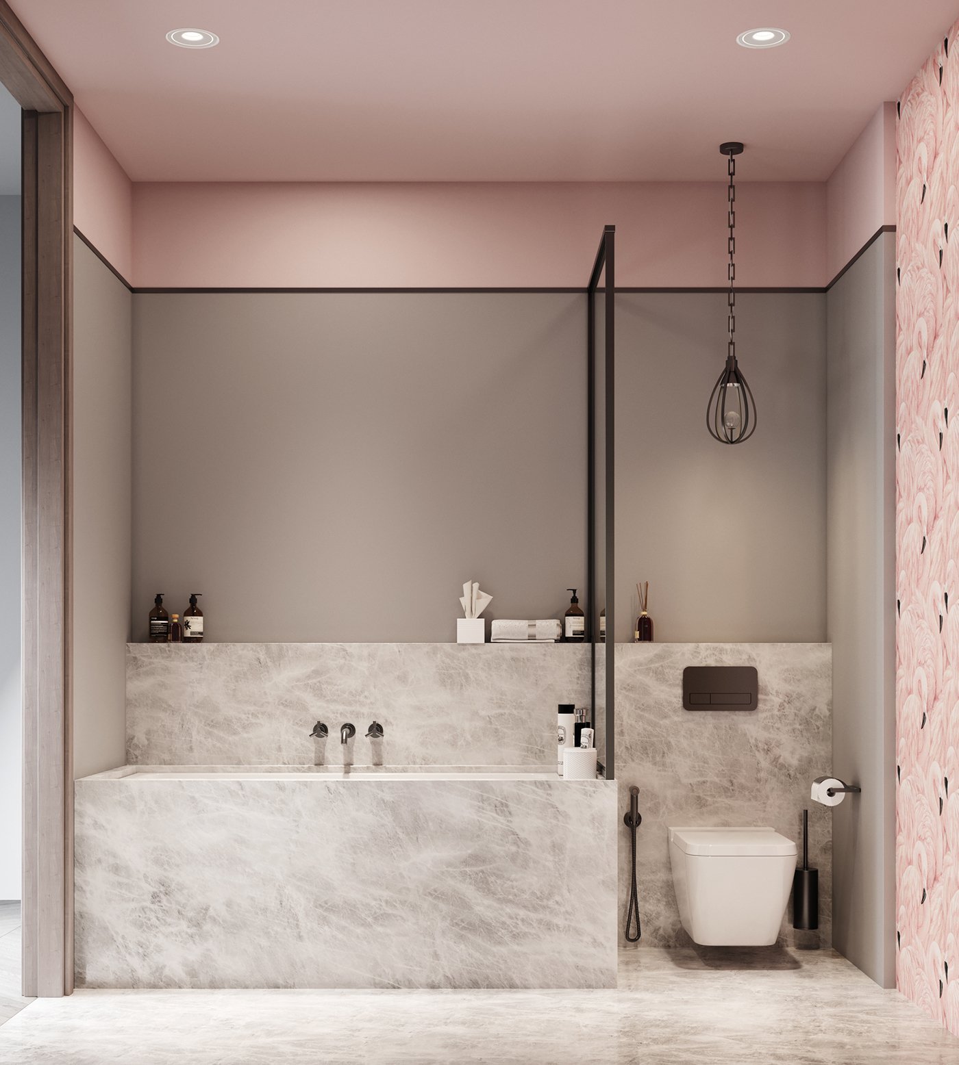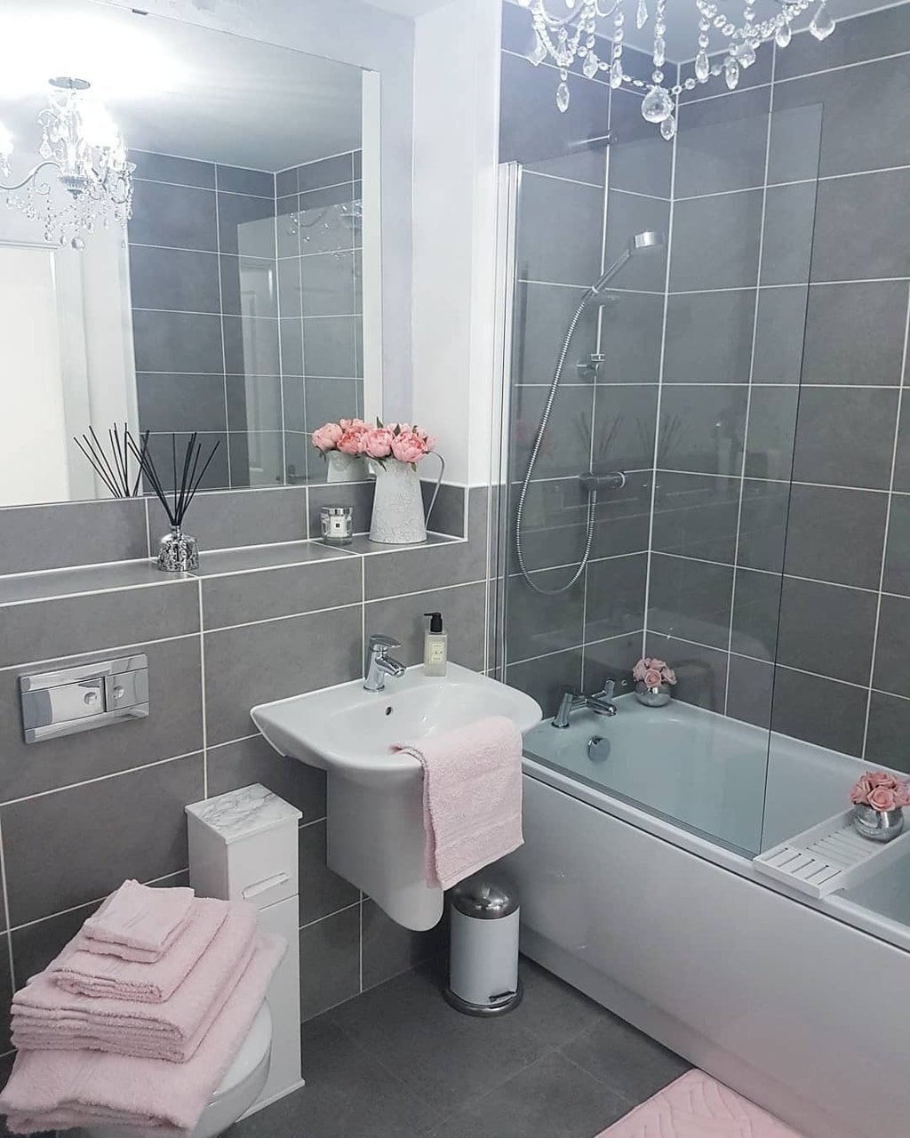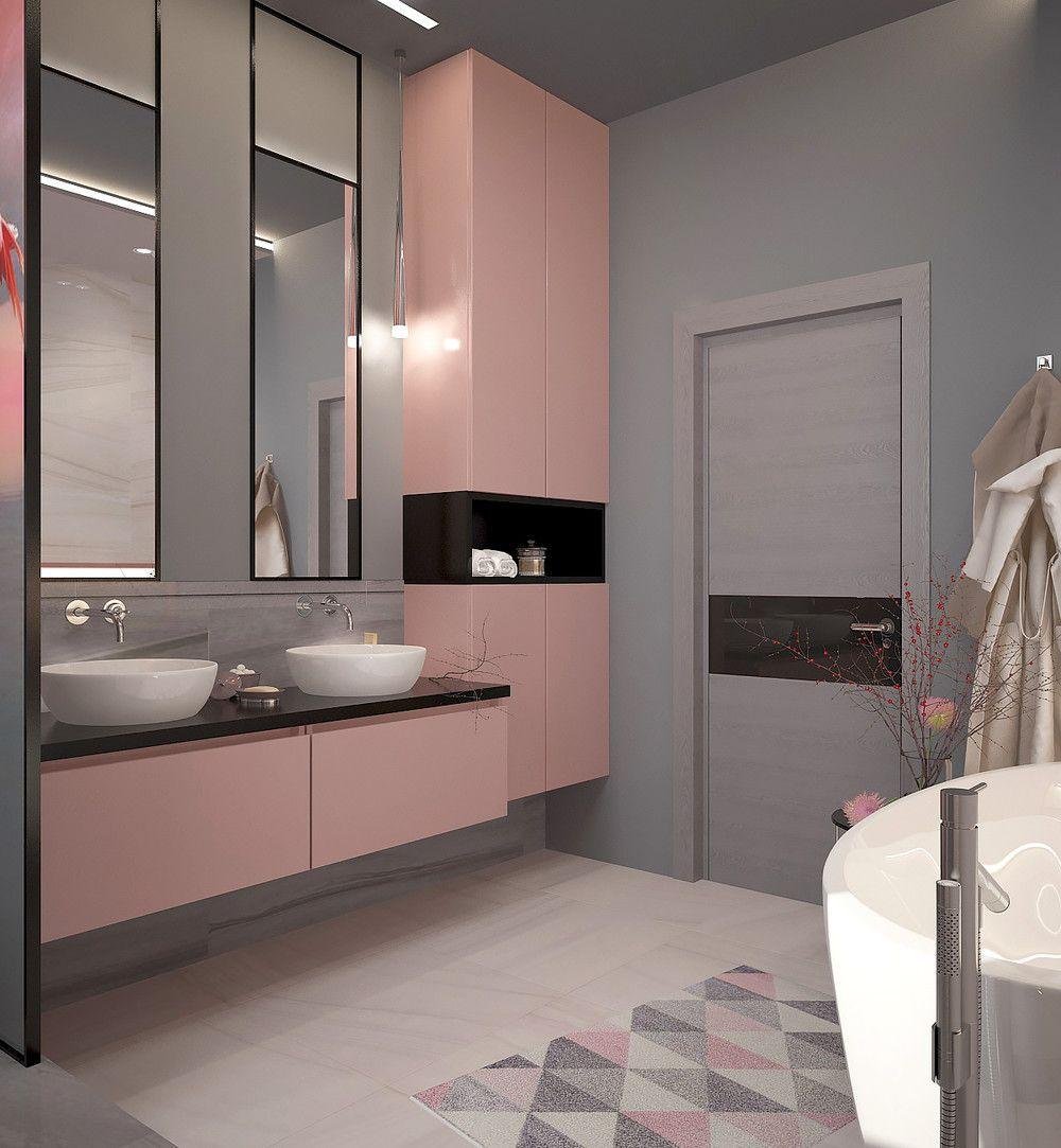 Ванная комната розовая с серым