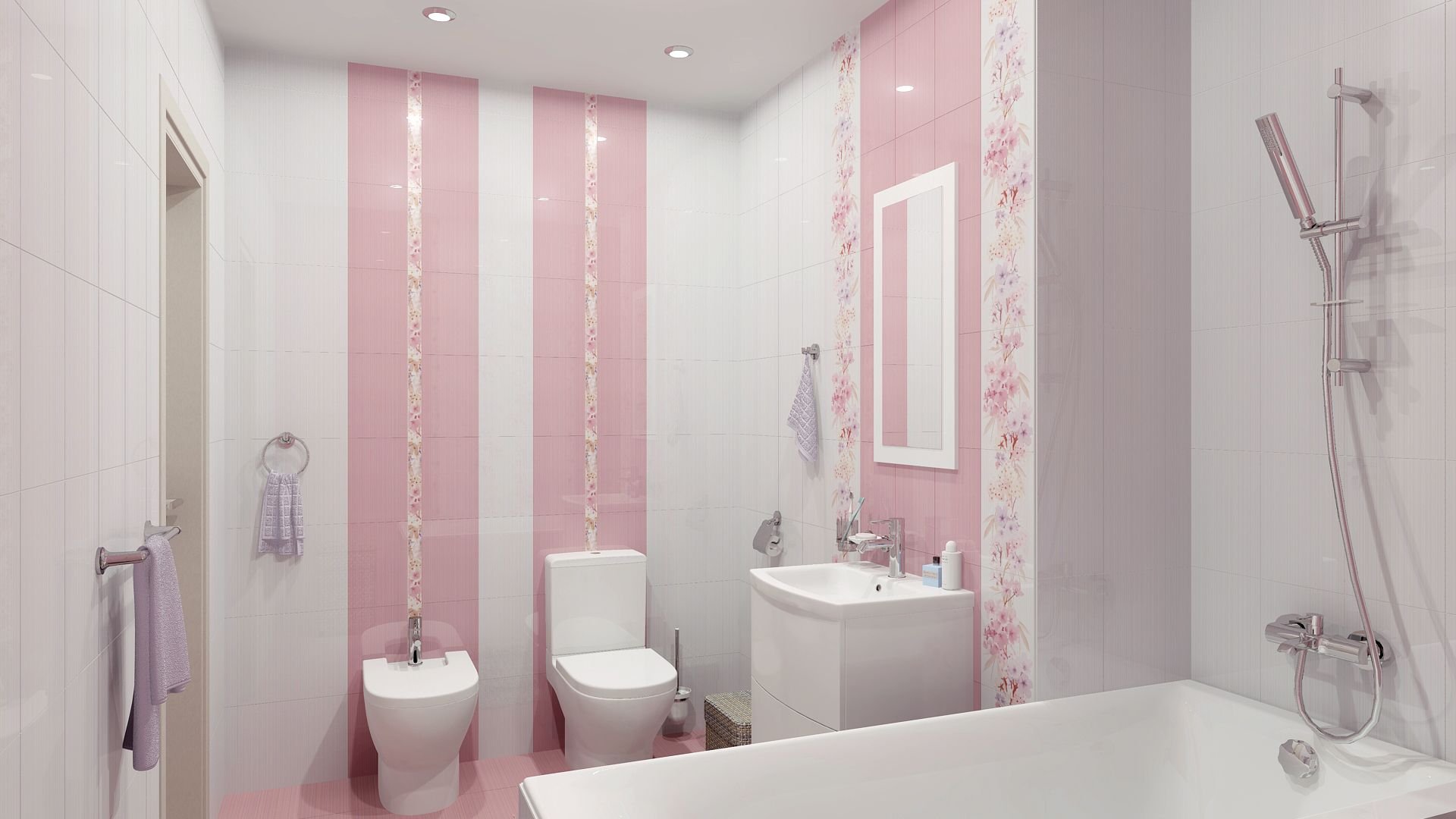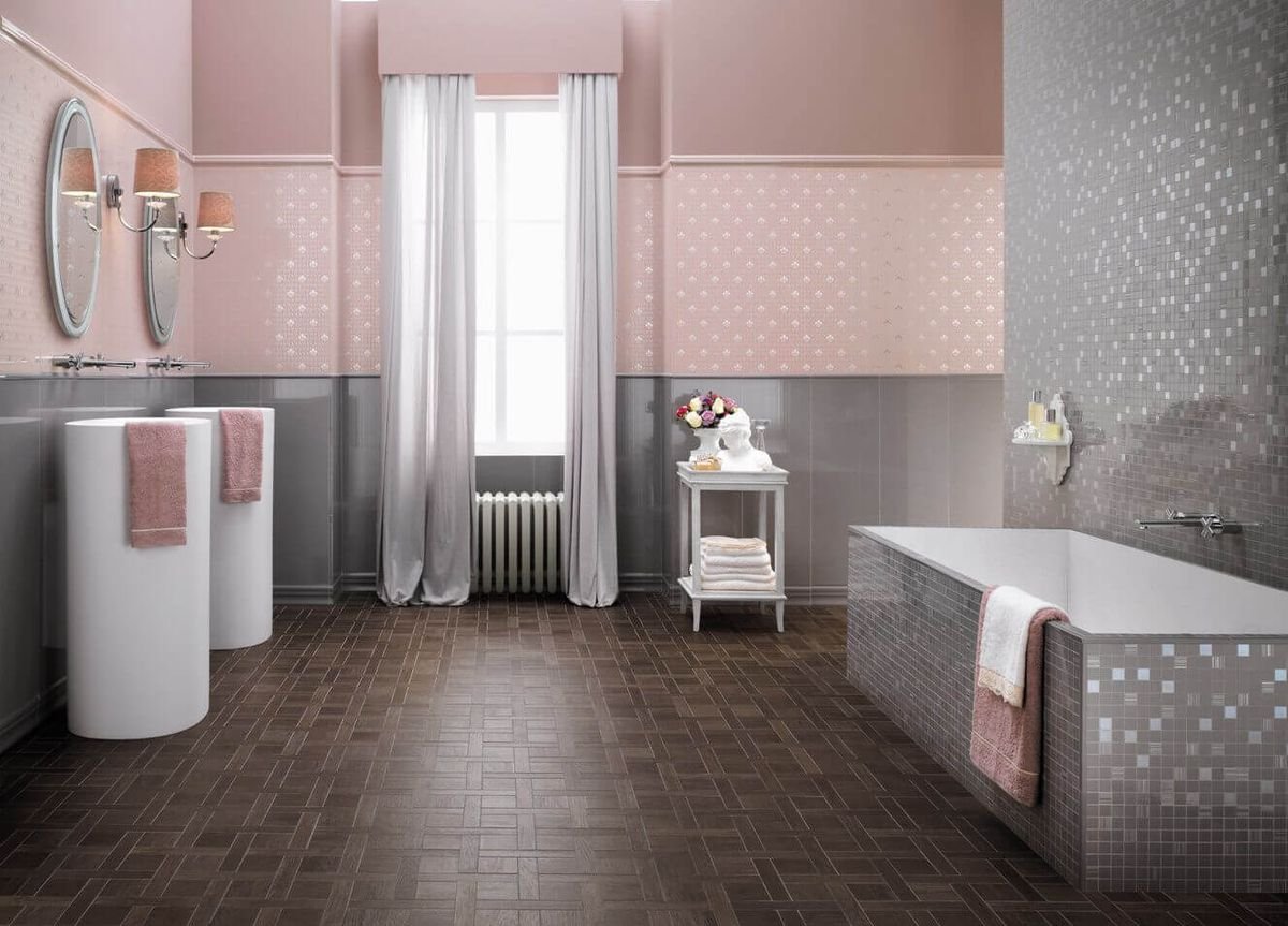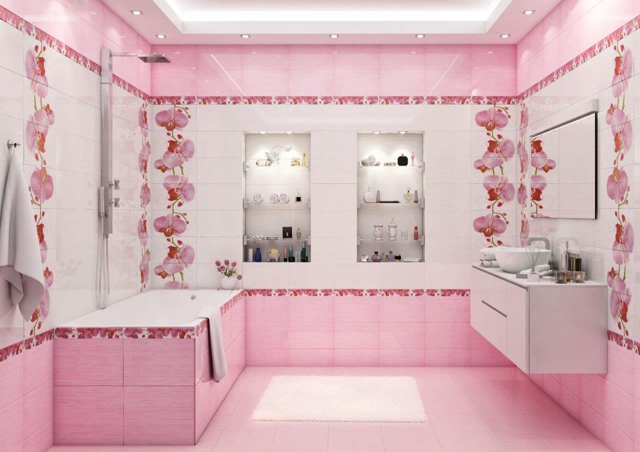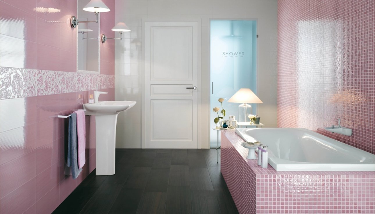Розовая плитка для ванной