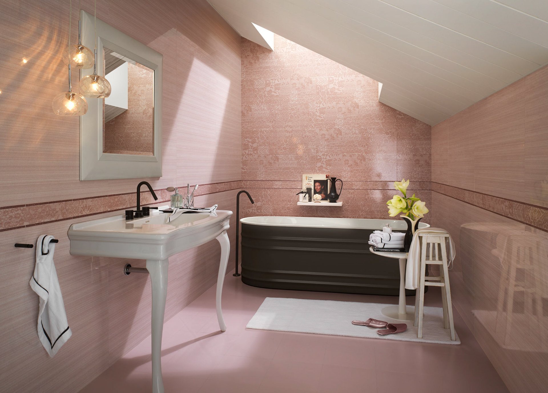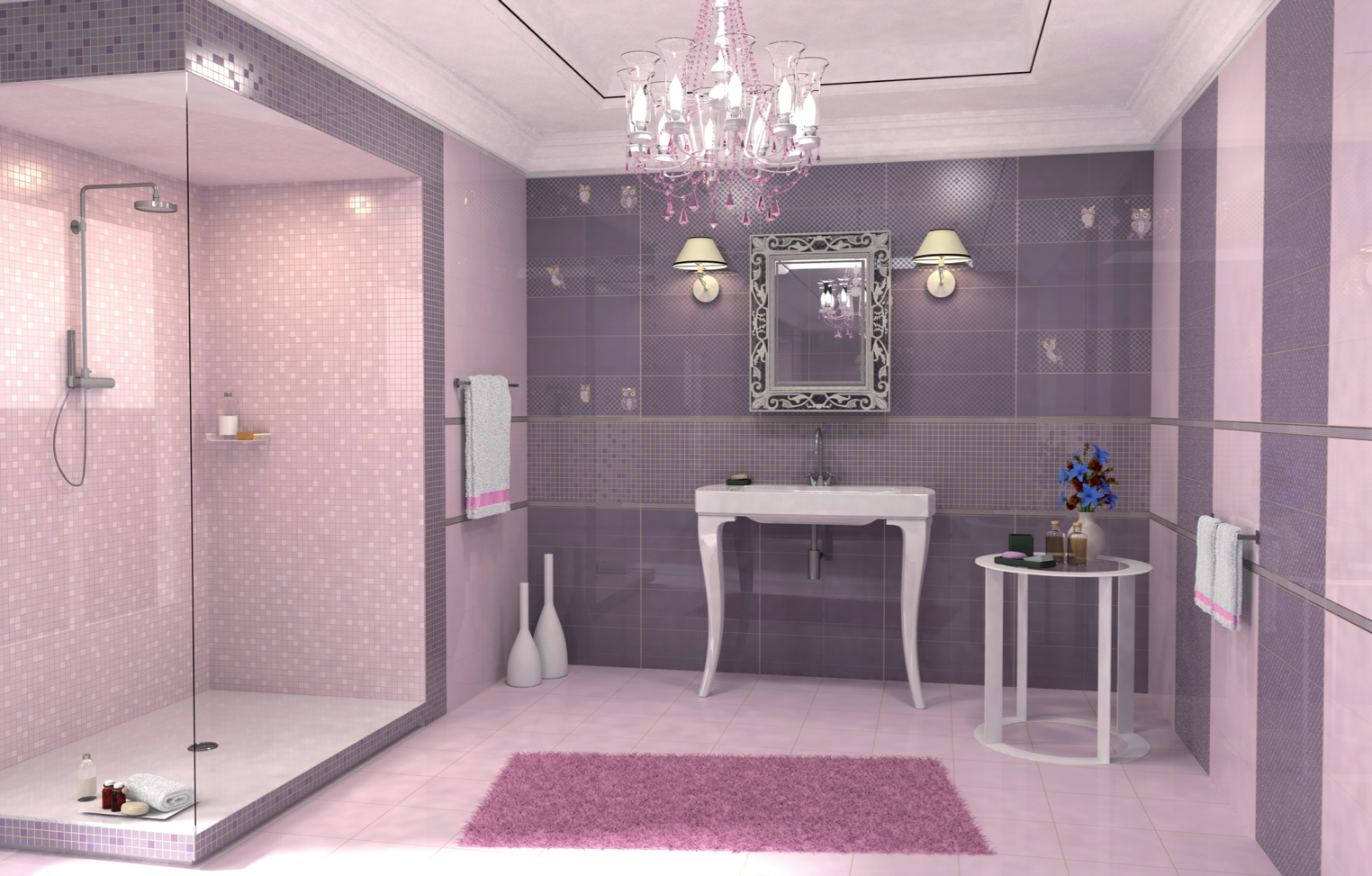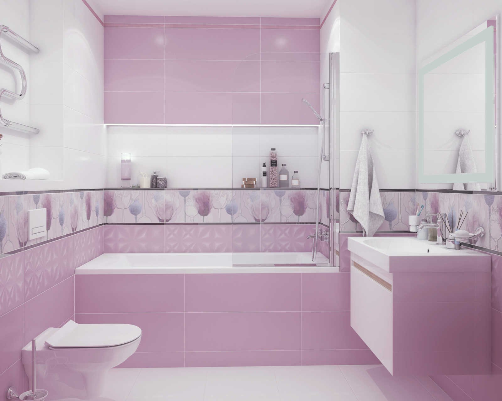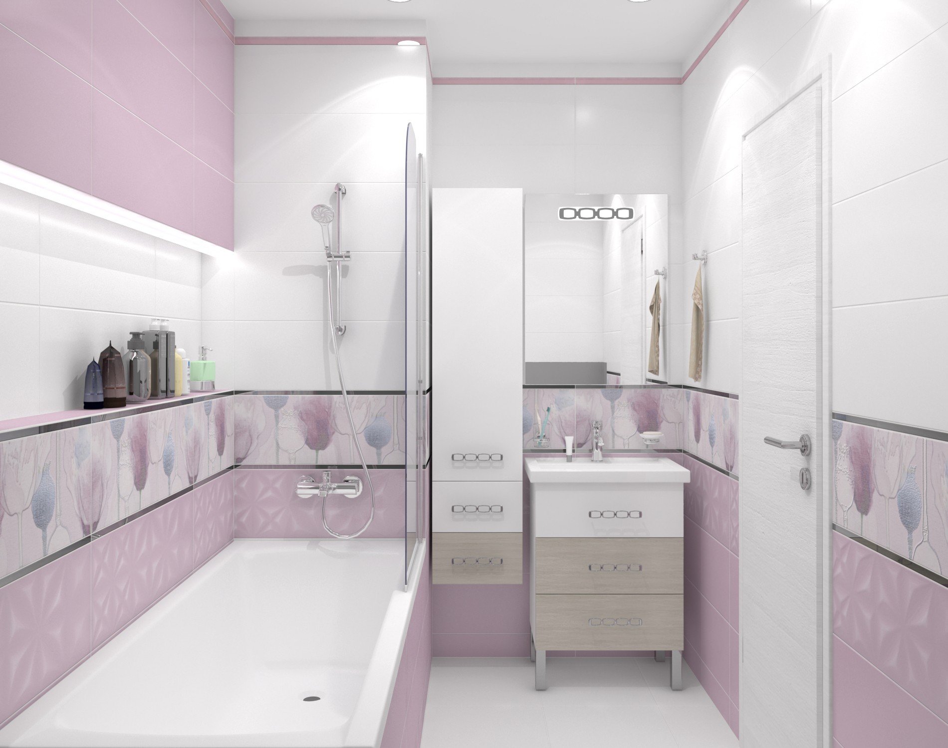 Розовая плитка для ванной
