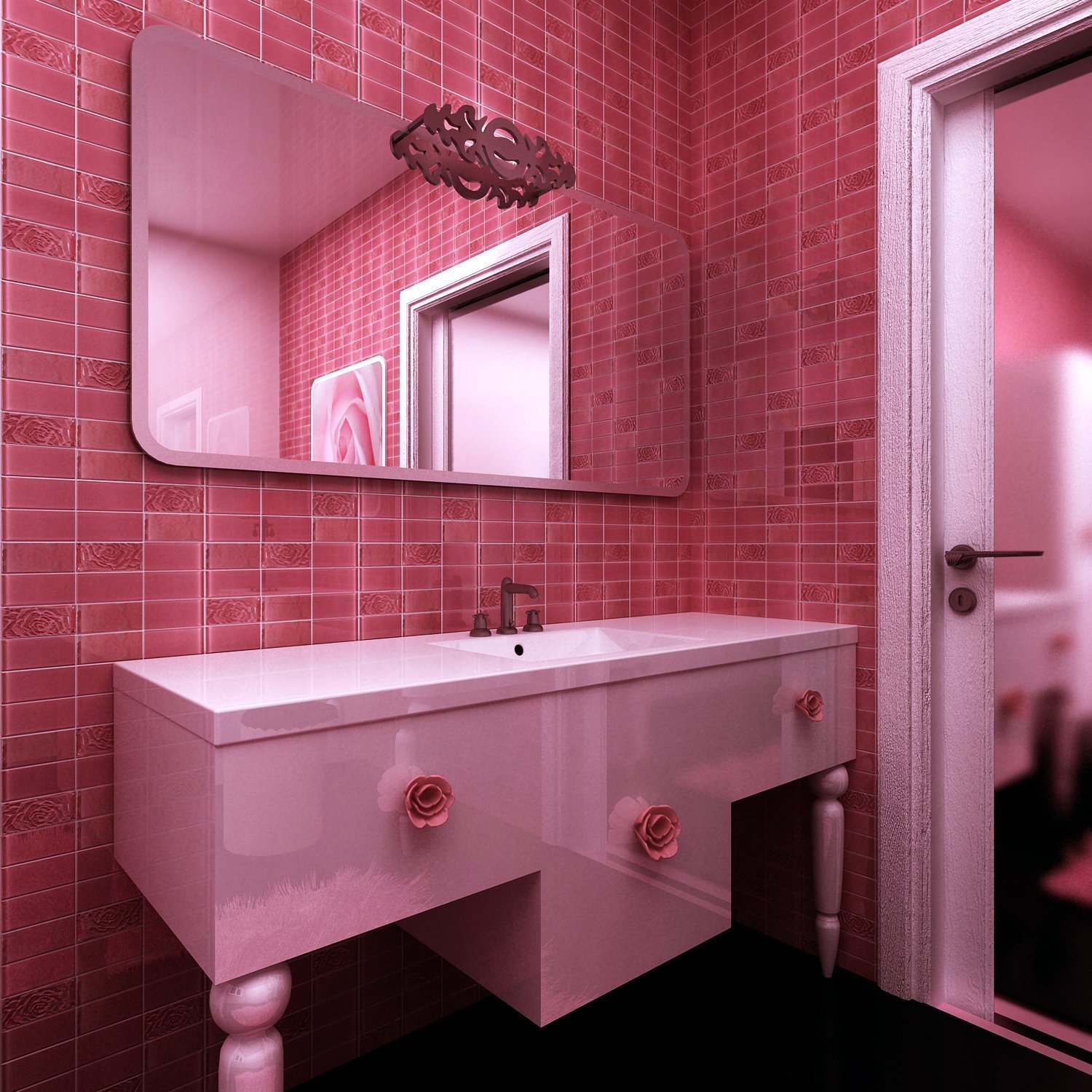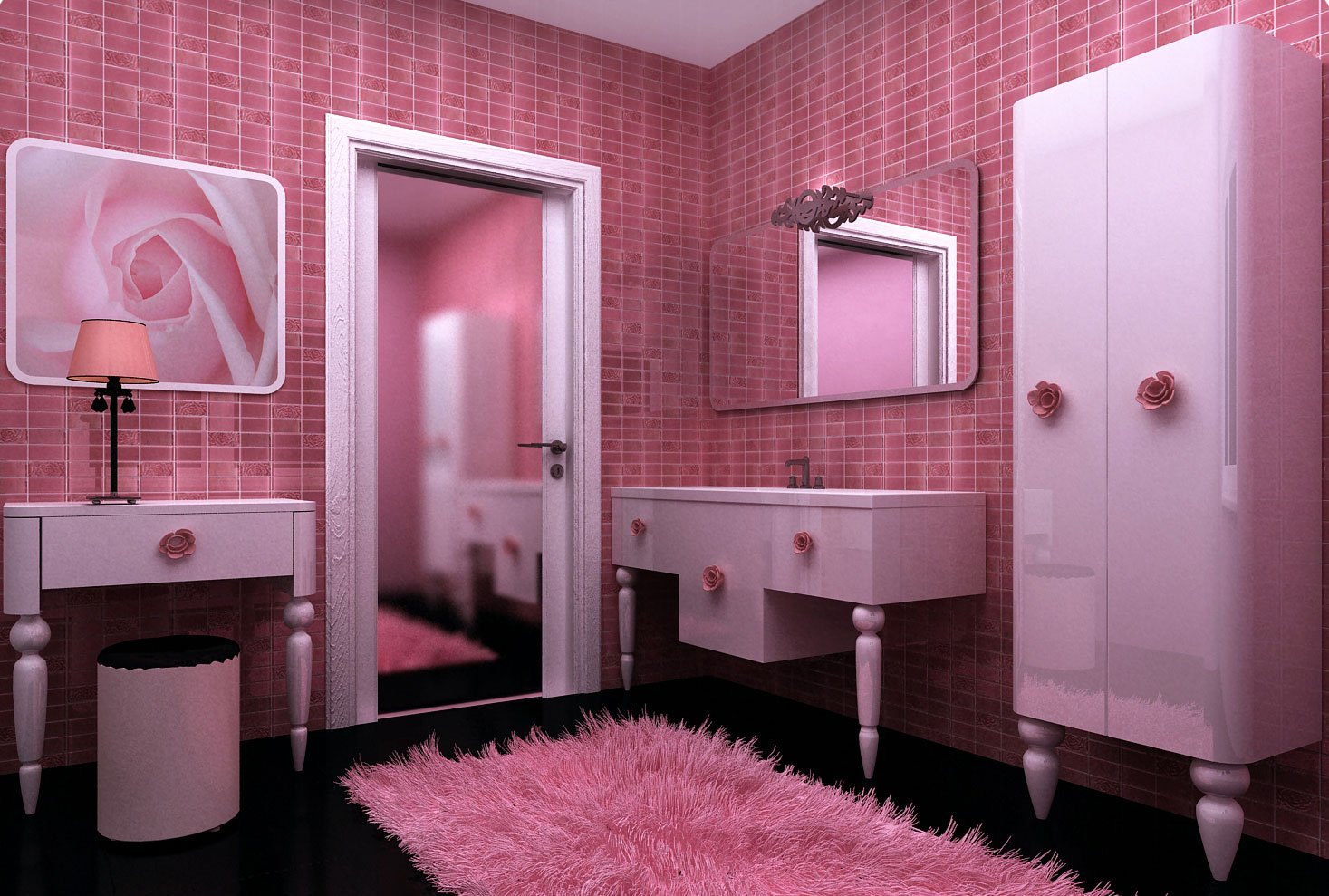 Ванная в стиле черно розовым