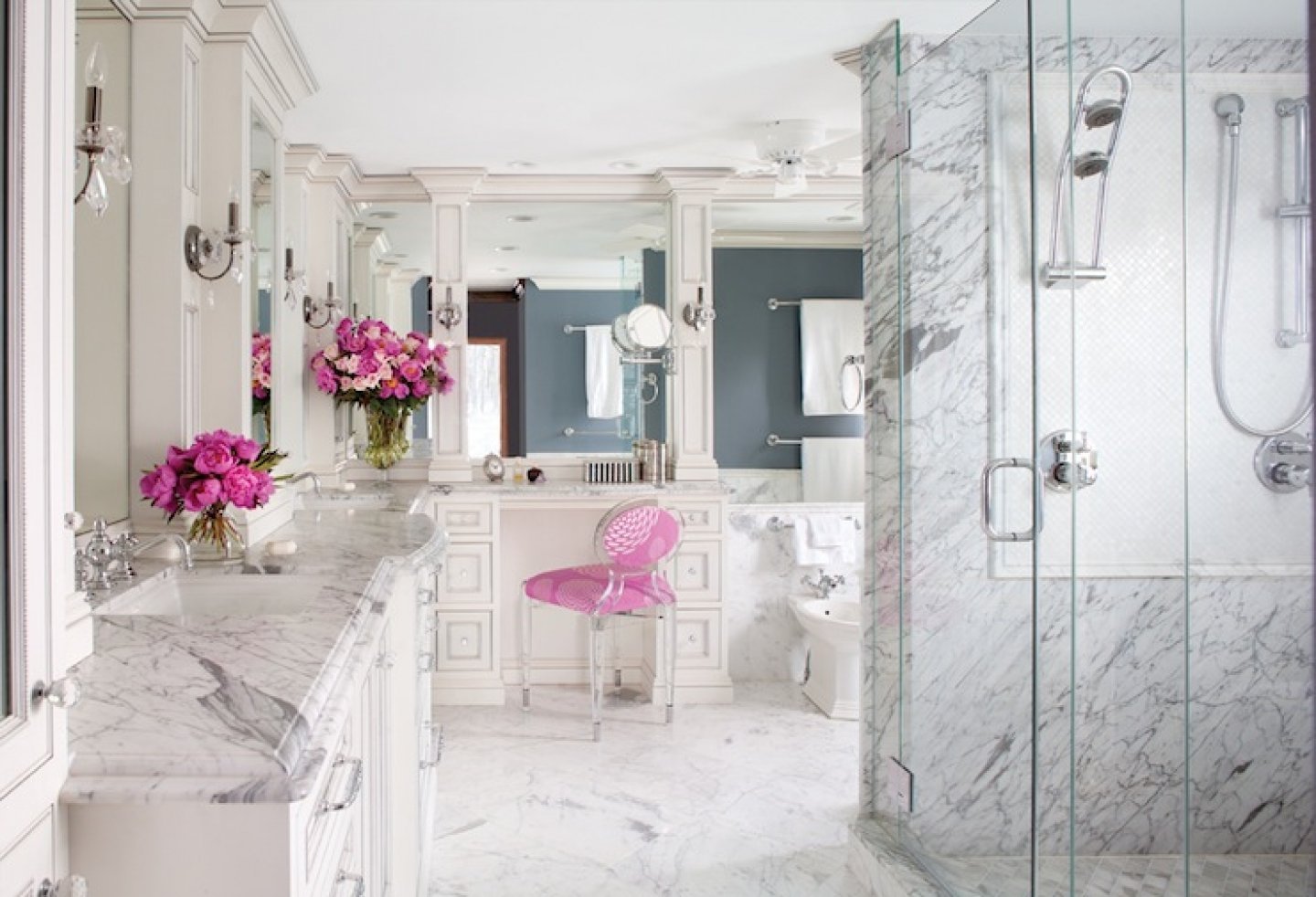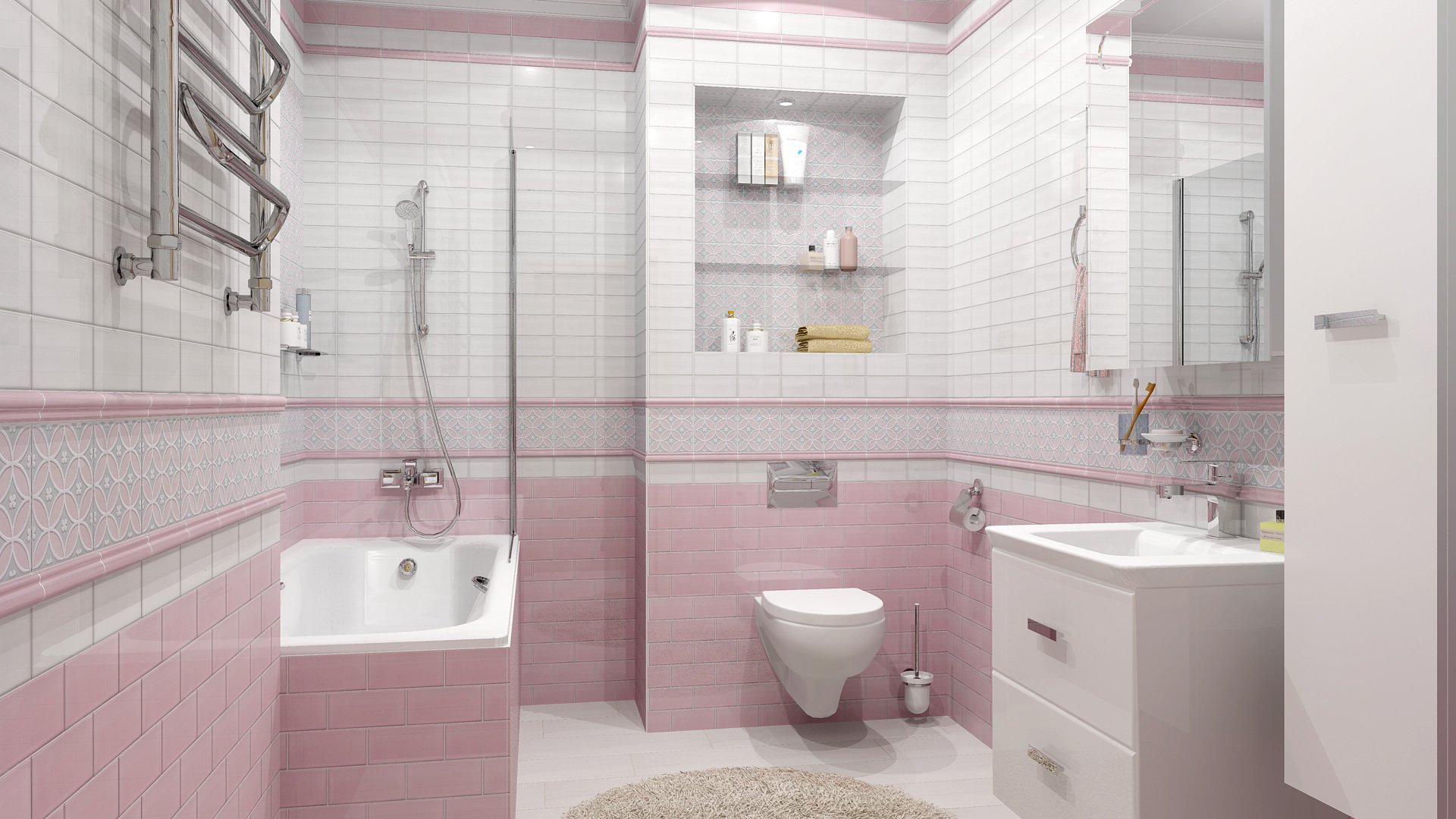 Ванная в бело розовых тонах