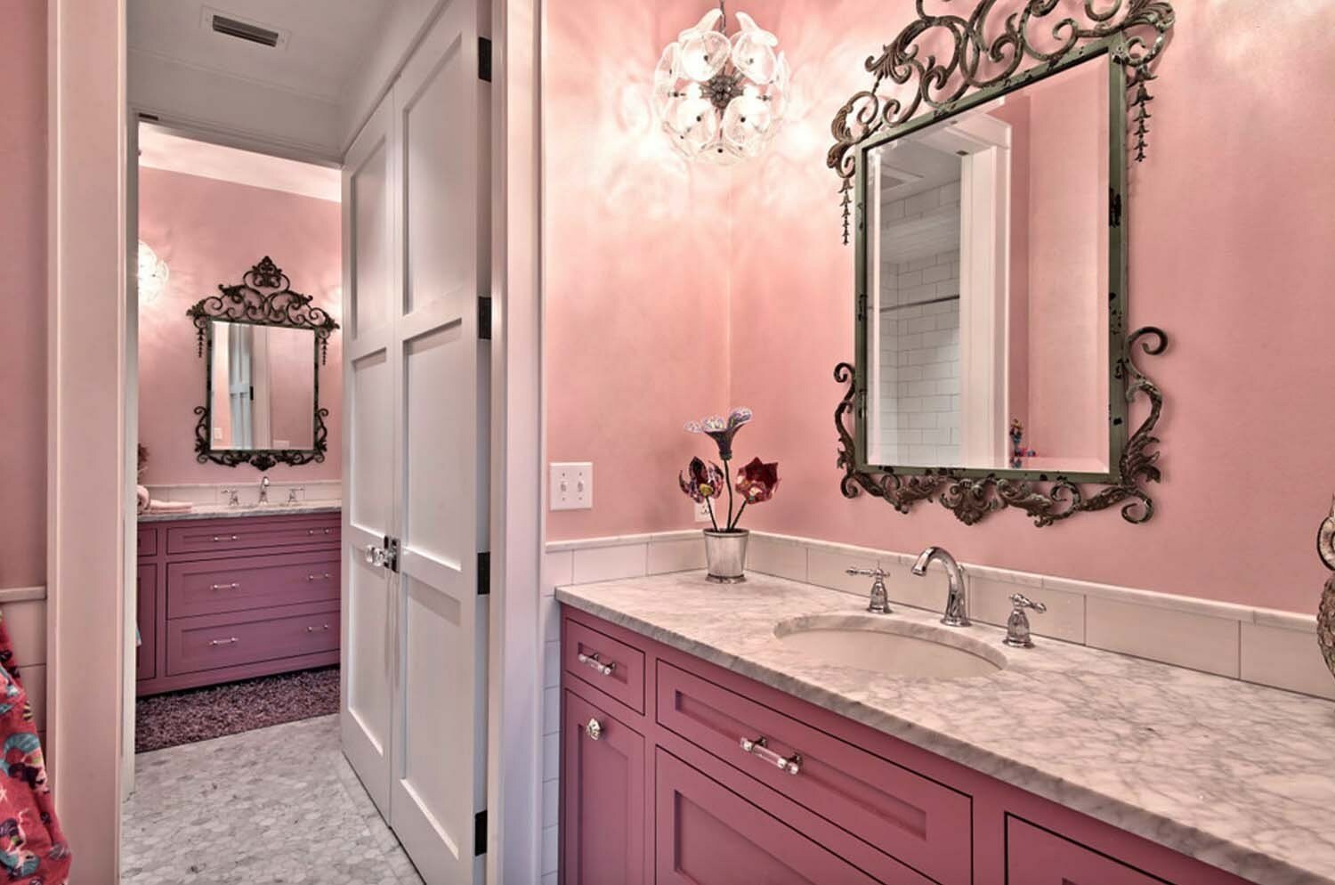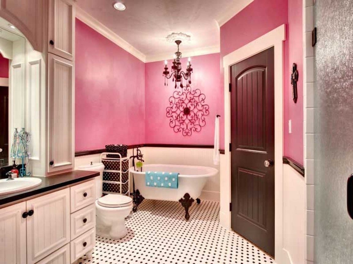 Декор розовой ванной комнаты