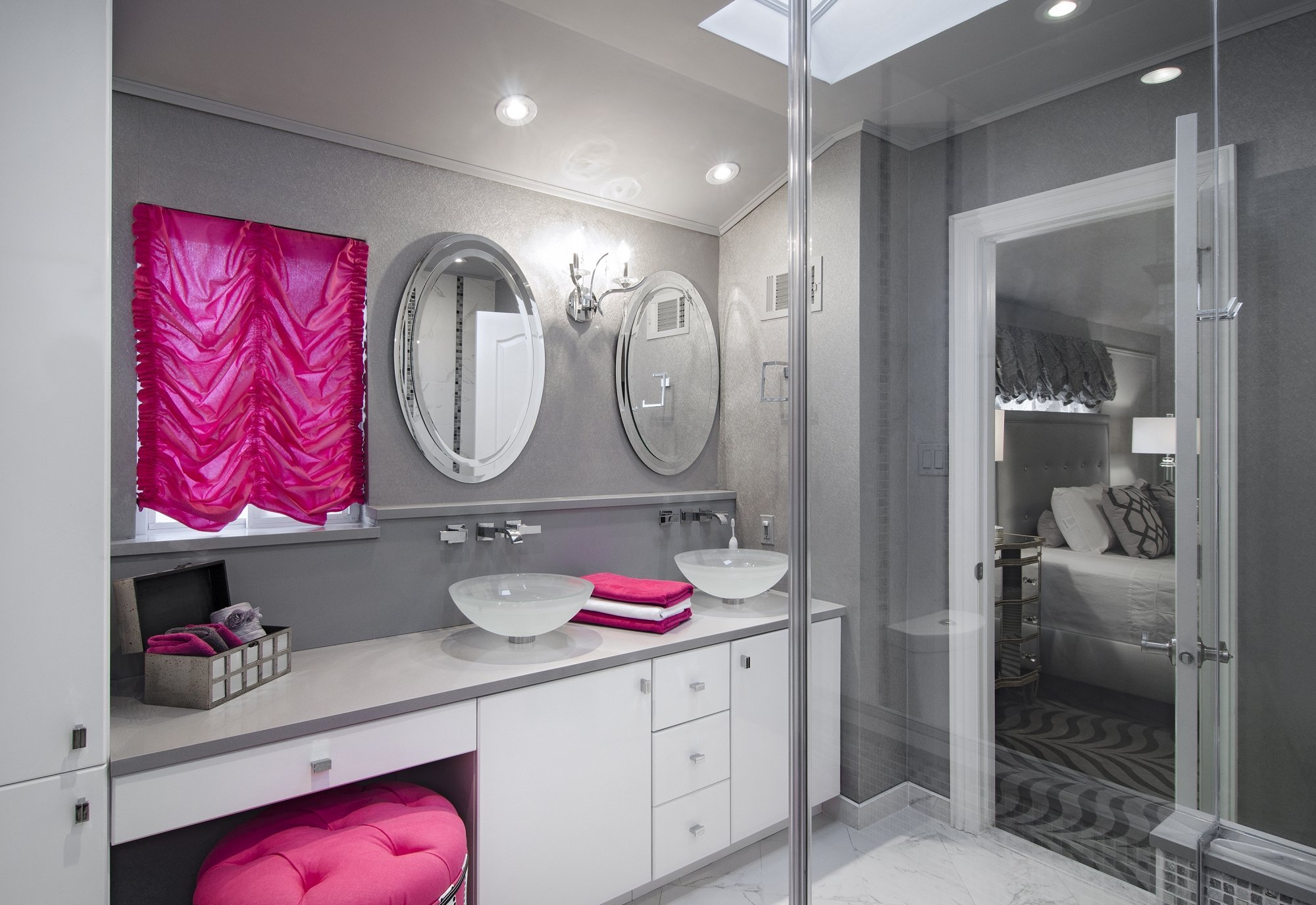 Серо-розовая ванная комната