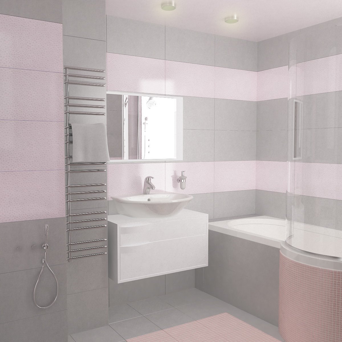 Ванная в серо розовых тонах