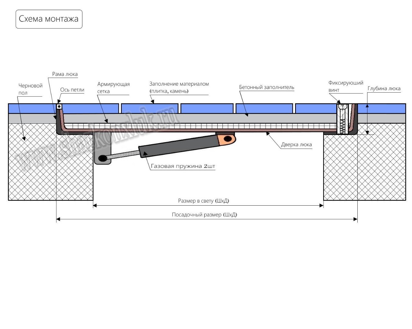 Люк напольный техник 700х800 схема установки