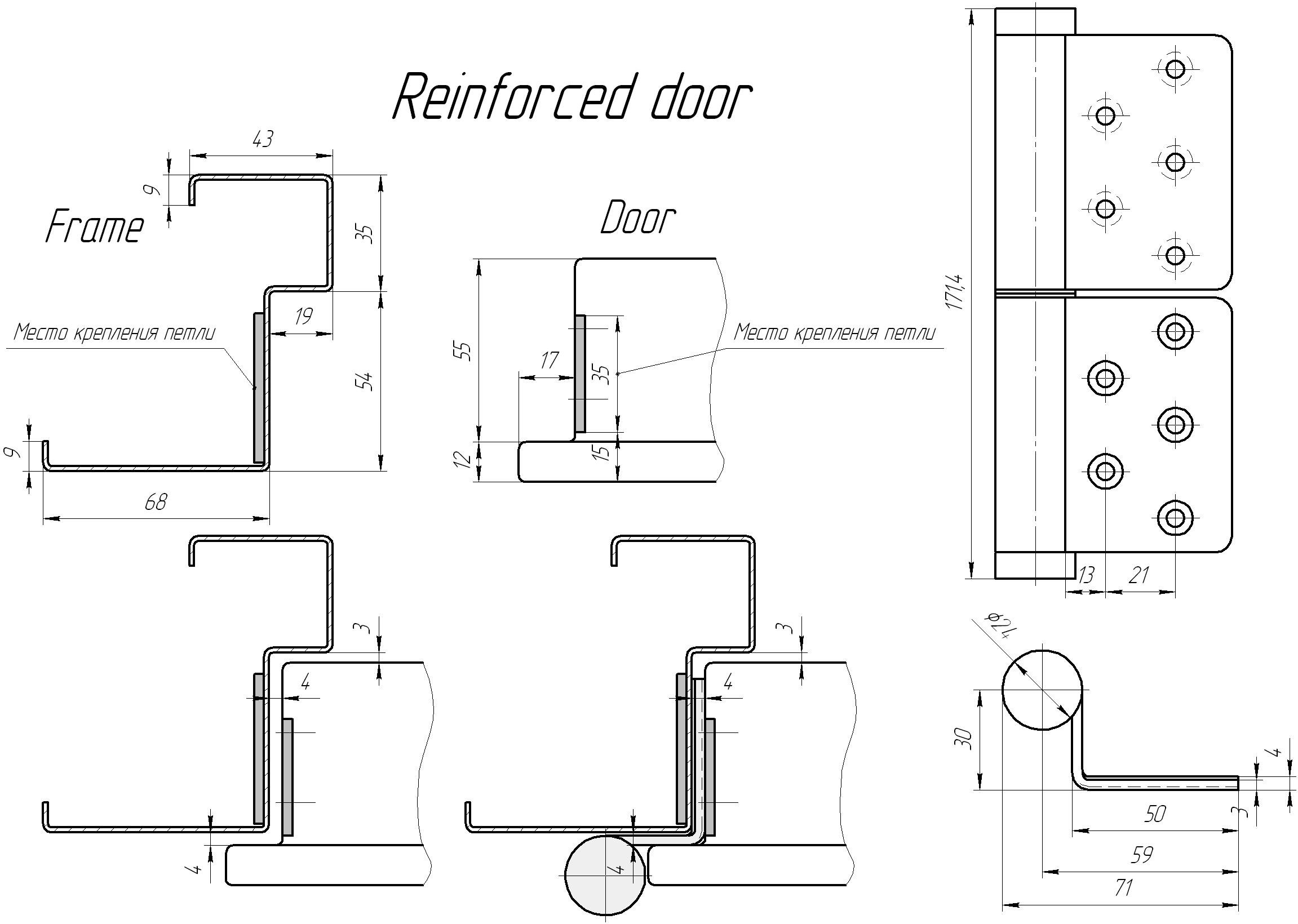 Петли скрытого монтажа для металлических дверей чертеж