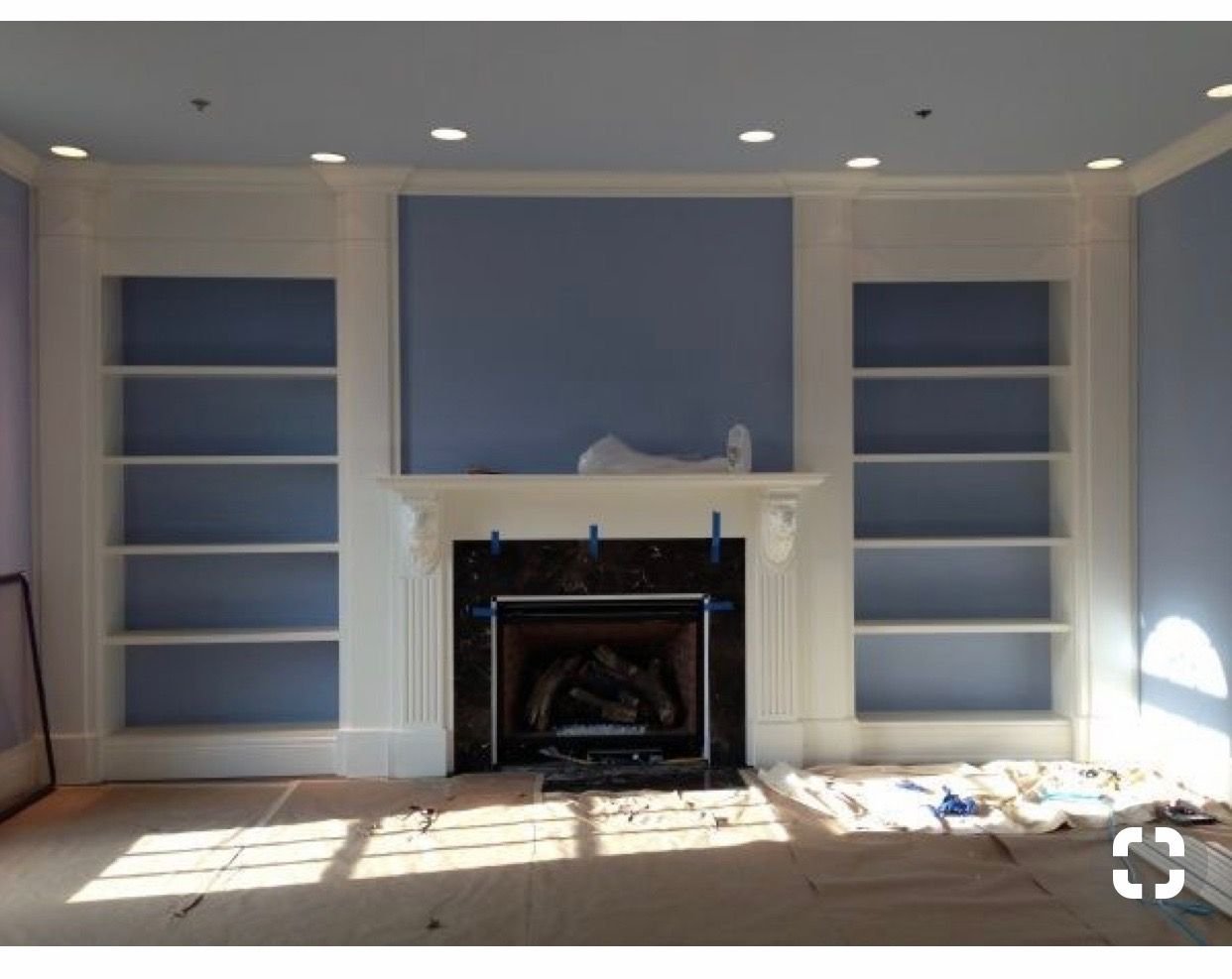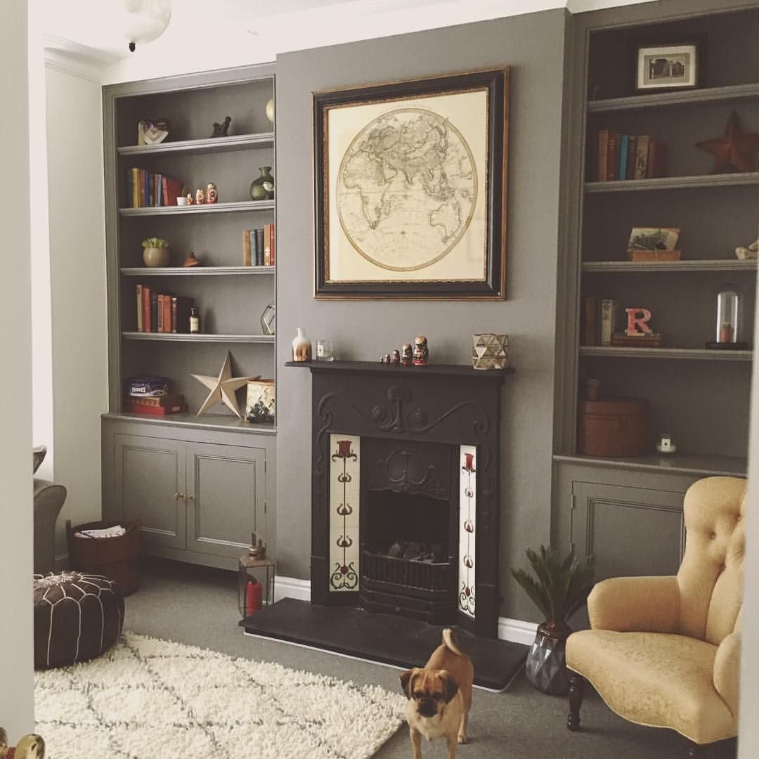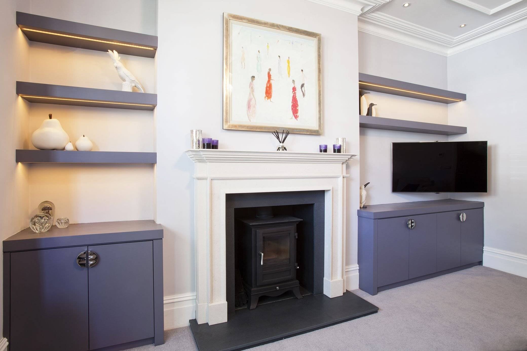 Гостиная с камином и шкафами