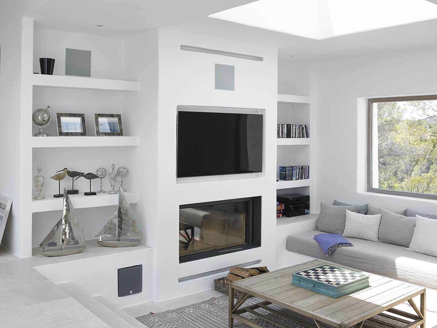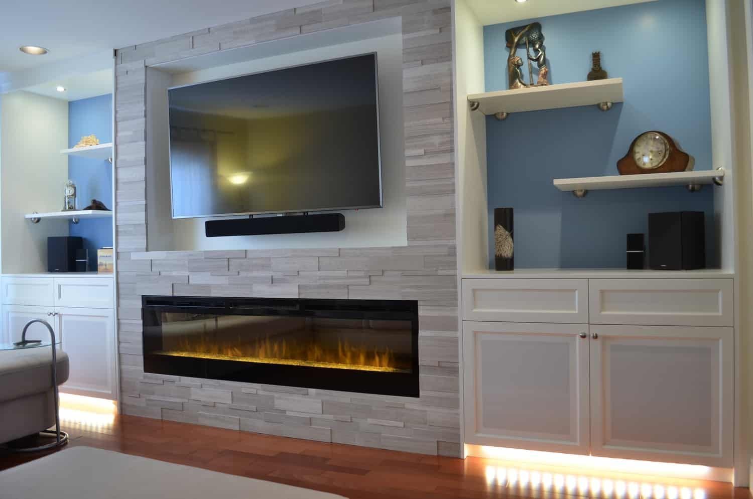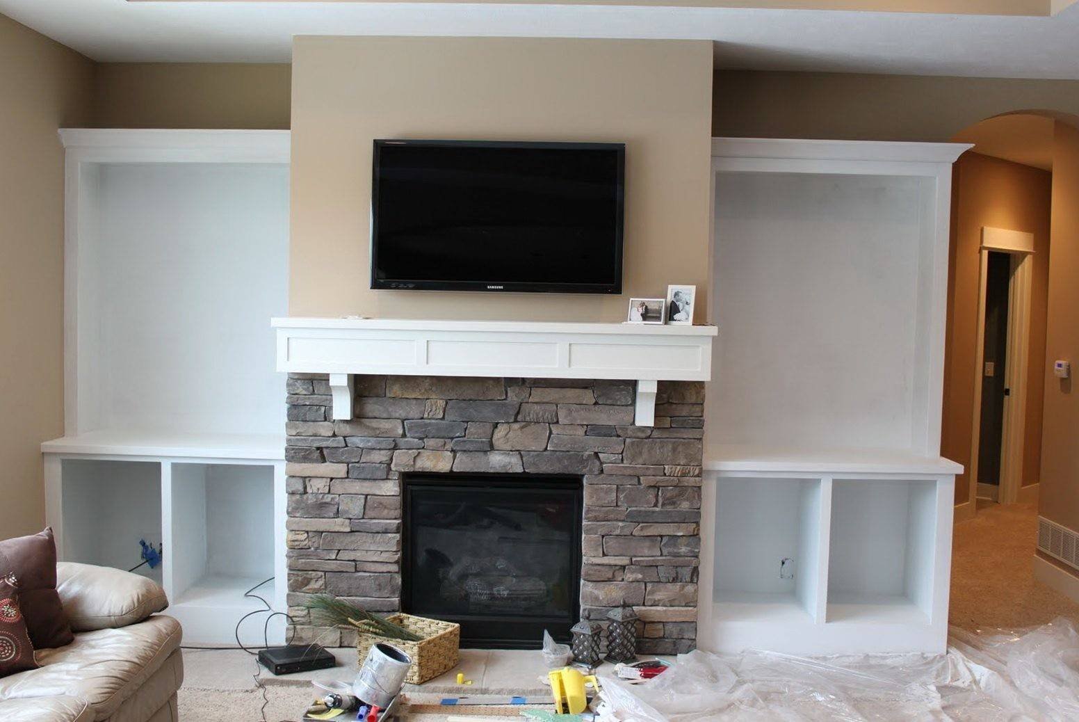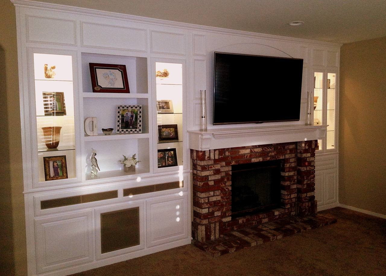 Стенка из гипсокартона под телевизор с камином