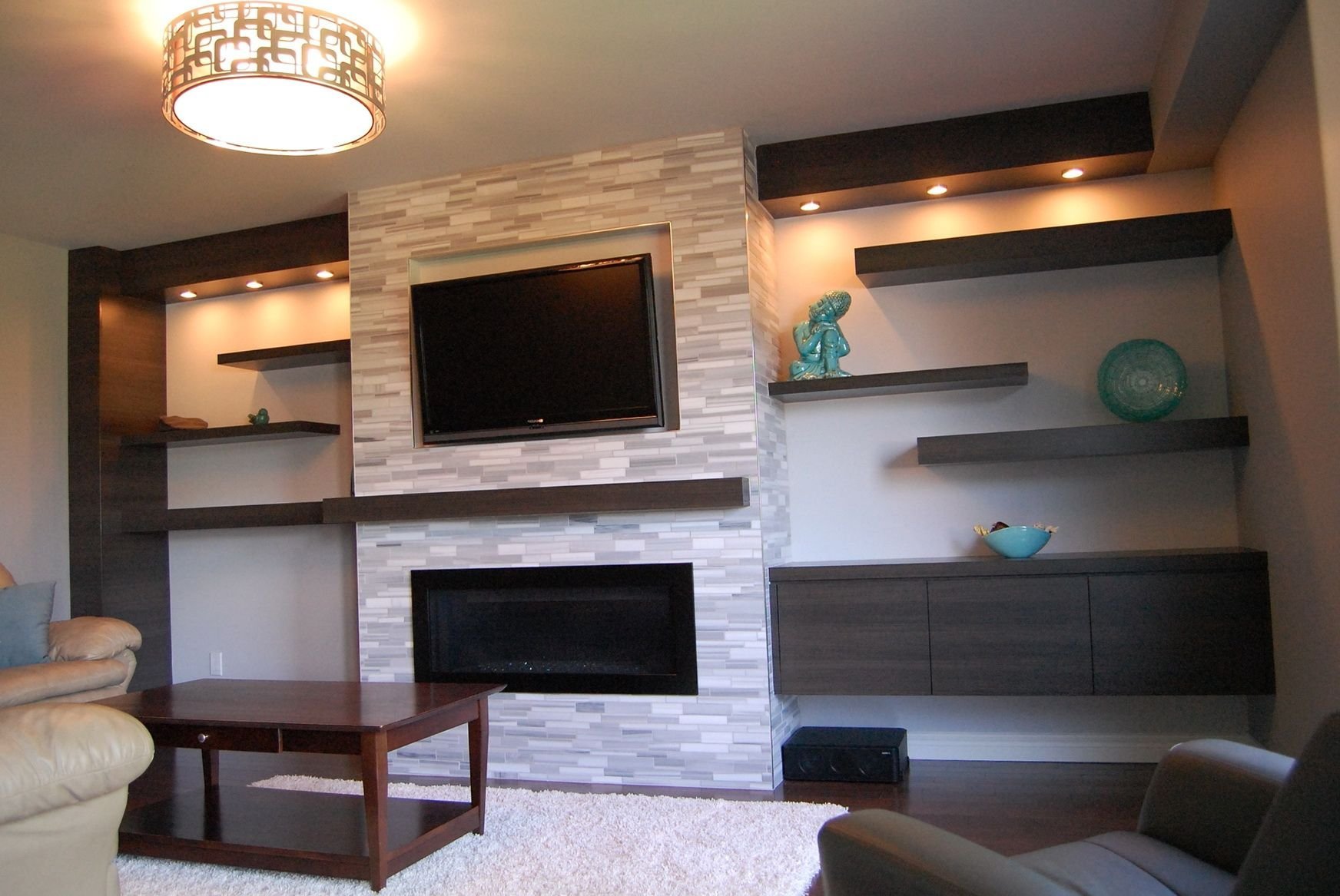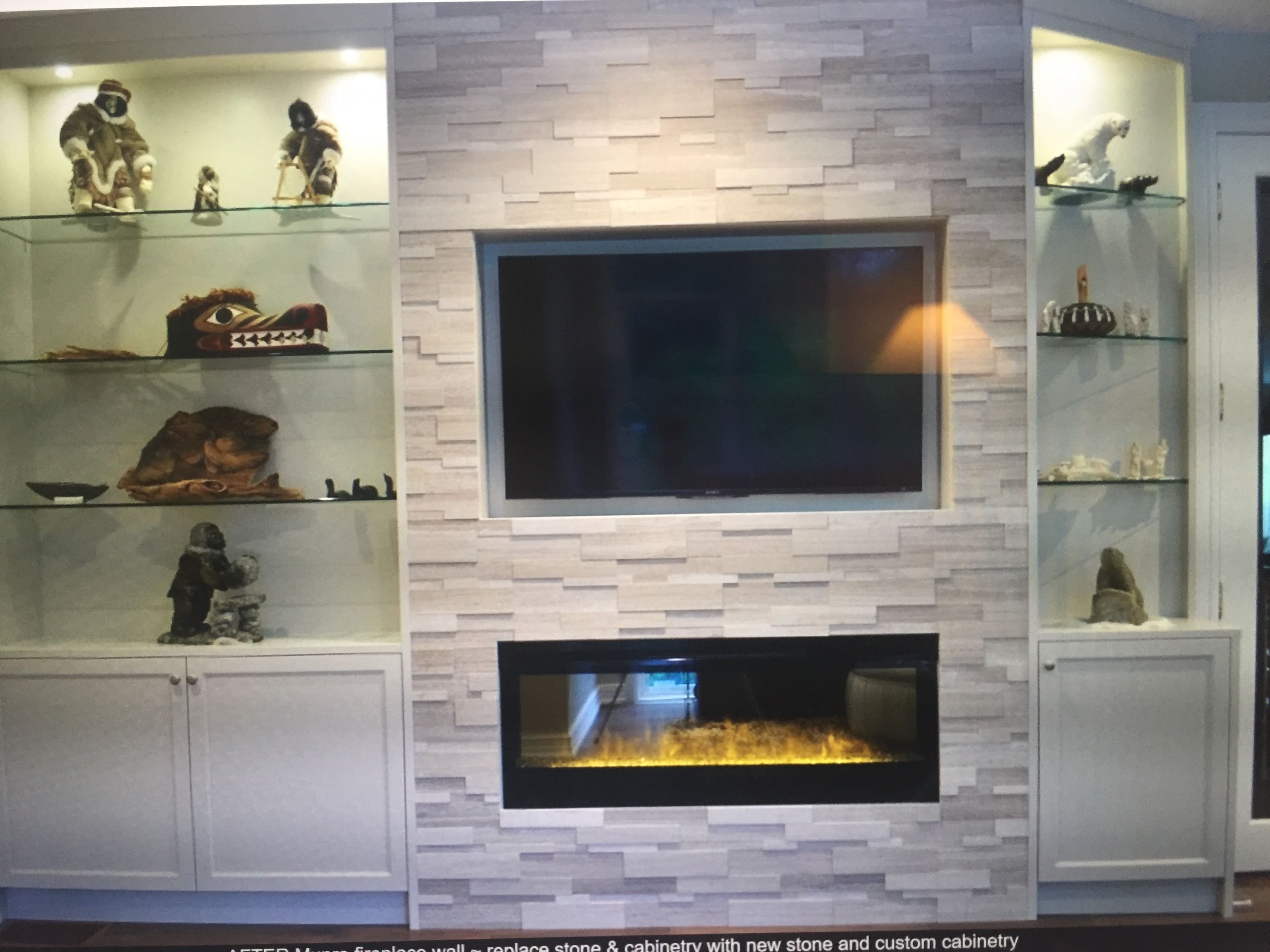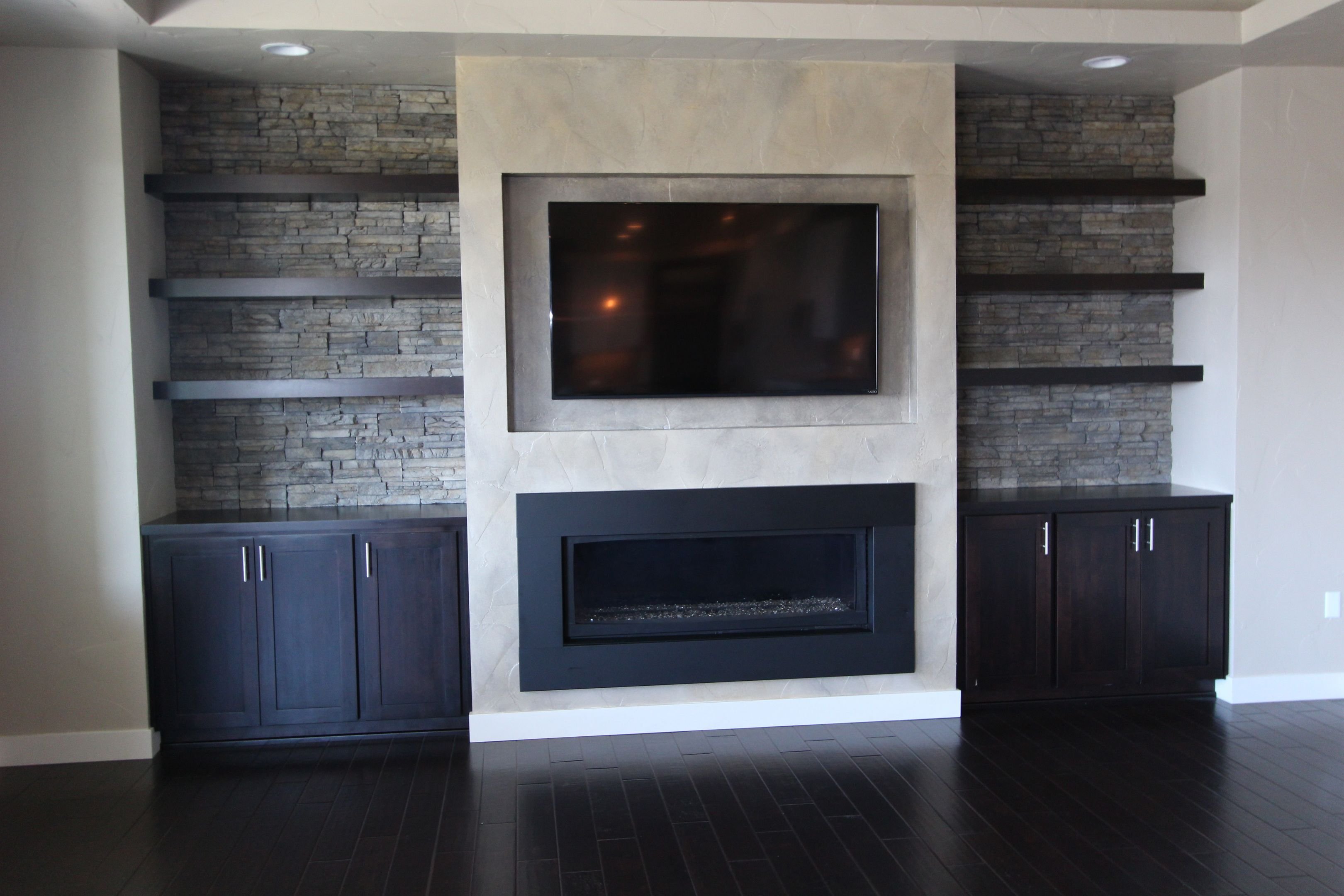 Стенка из гипсокартона под телевизор с камином