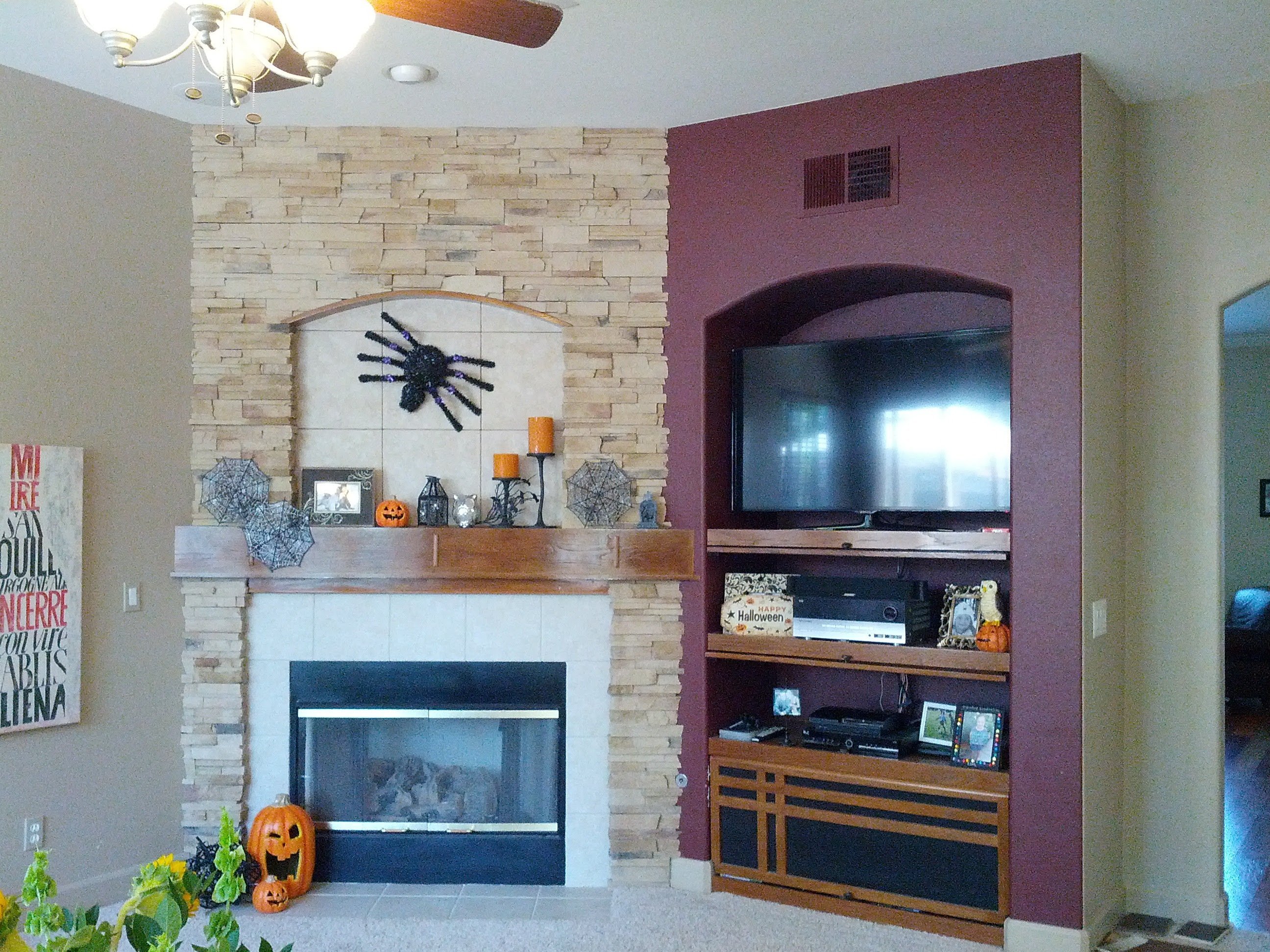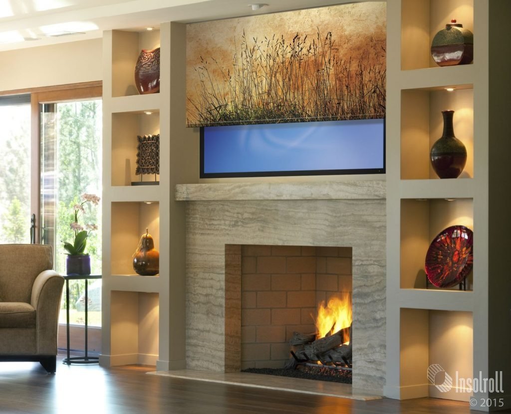 Телевизор над камином