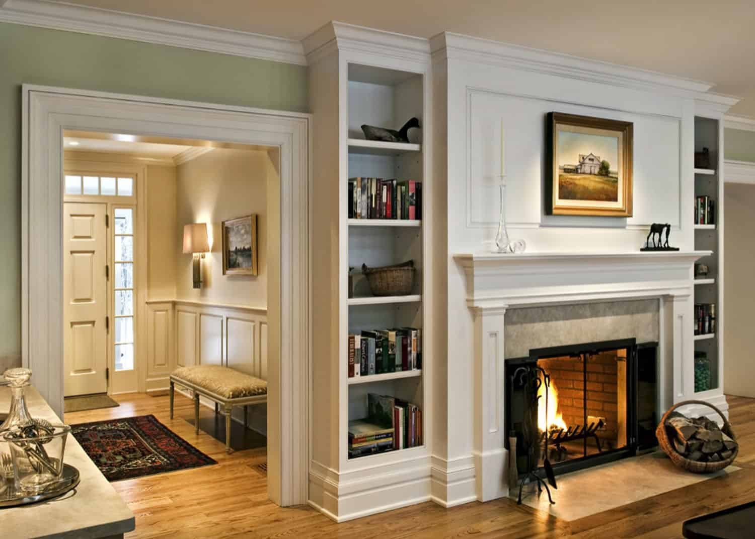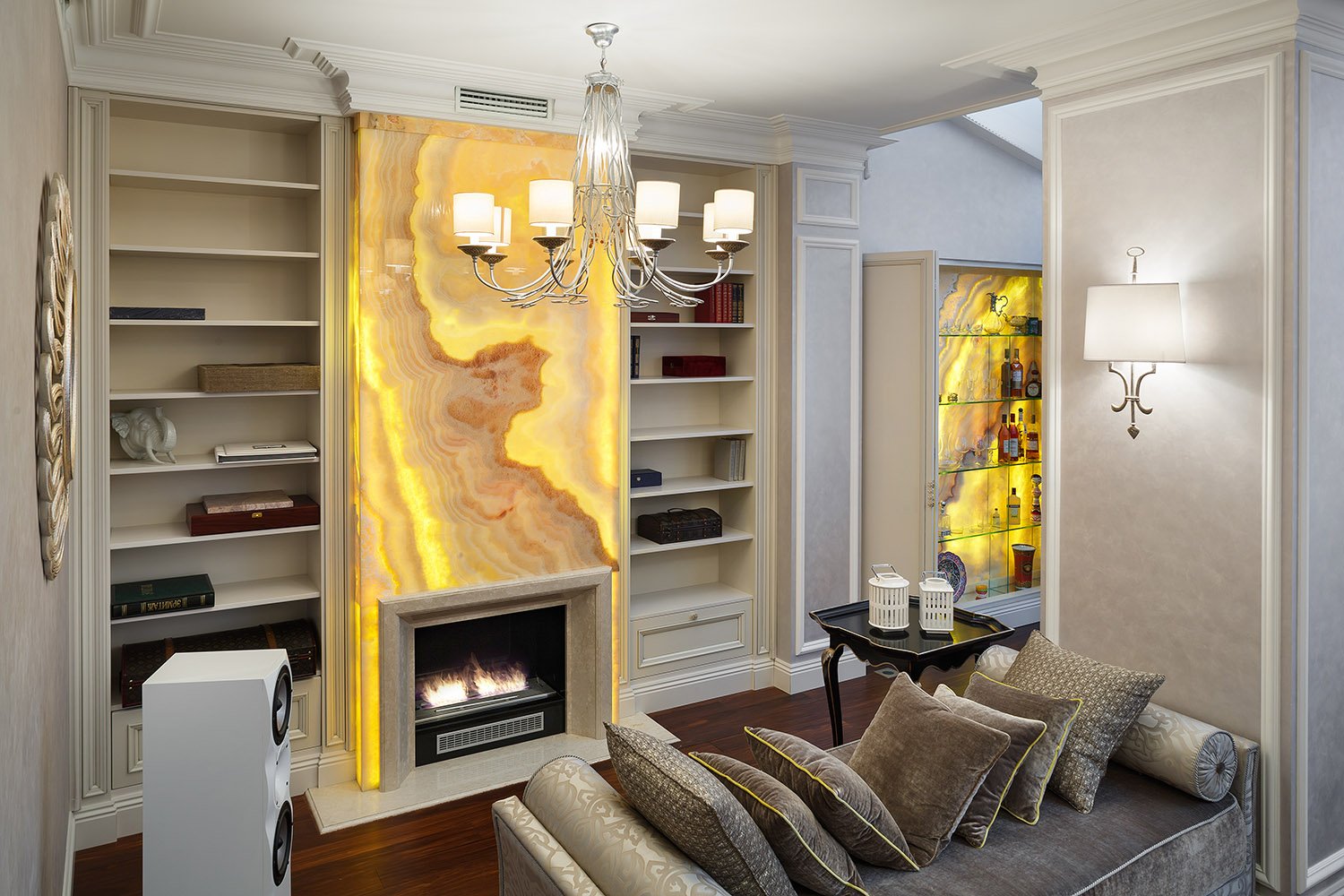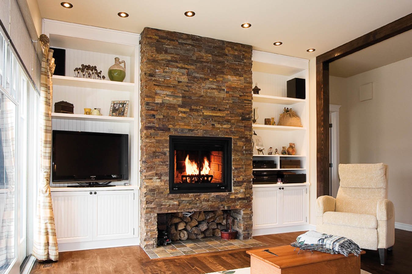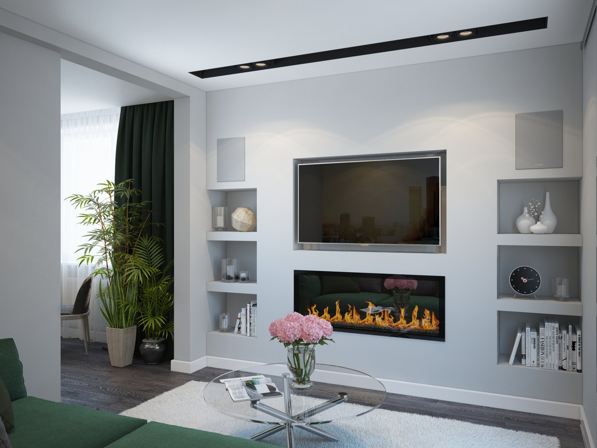 Встроенный камин в гостиной