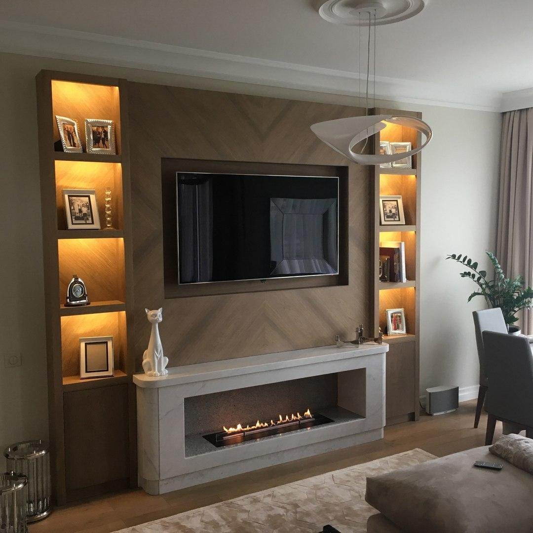 Камин под телевизором в гостиной
