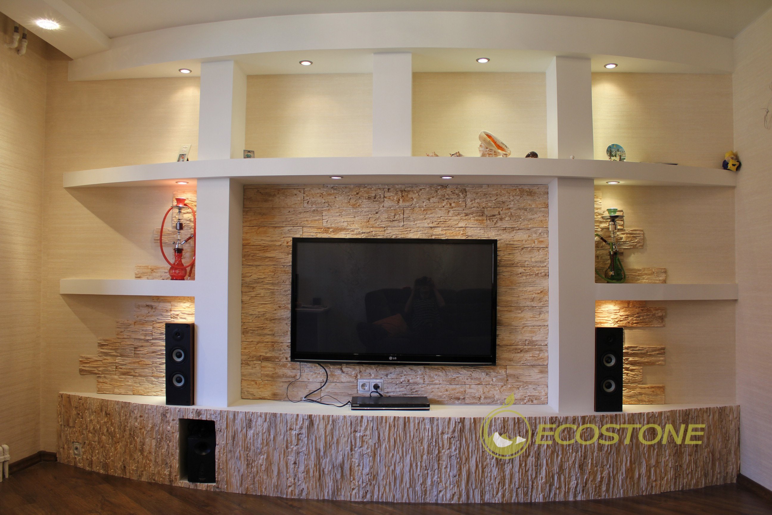 Декоративный камень за телевизором