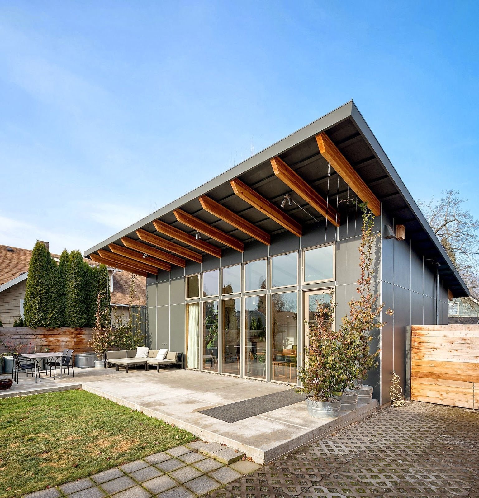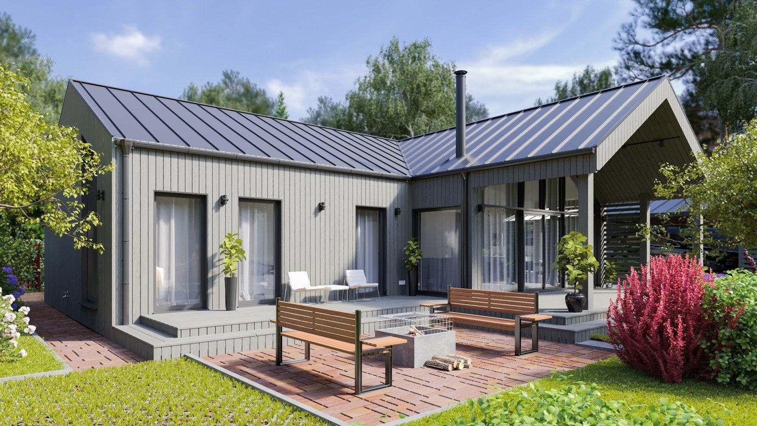 Дом в стиле лофт одноэтажный с односкатной крышей