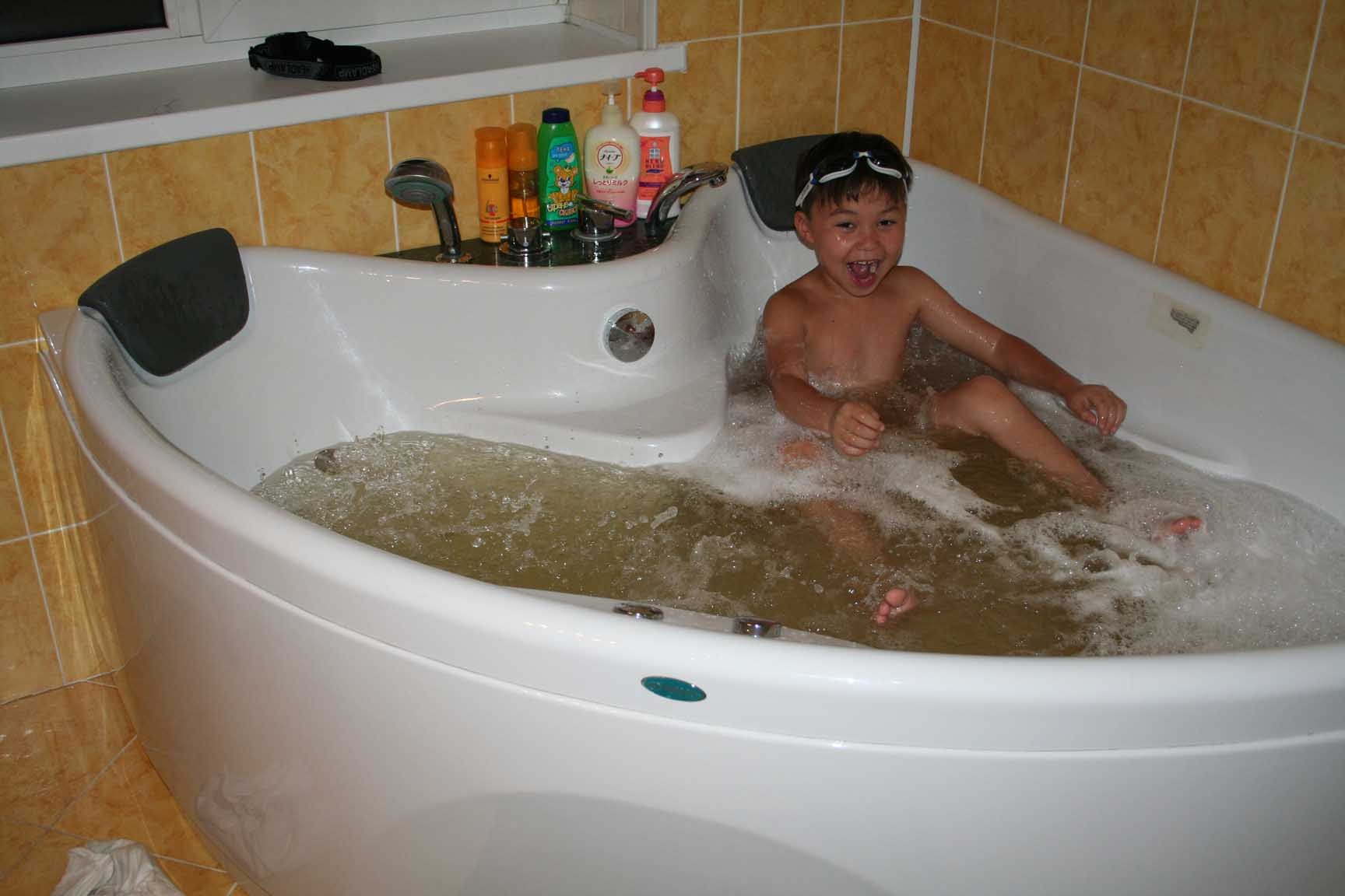 Купается в ванной